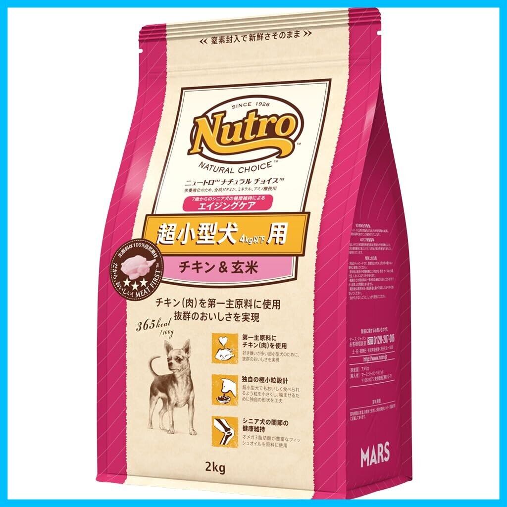 Nutro ナチュラルチョイス シニア犬用 超小型犬4kg以下用 チキン&玄米 2kg ドライフード 極小粒 総合栄養食 エイジングケア ドッグフード 犬 自然素材 香料・着色料 無添加 ニュートロ