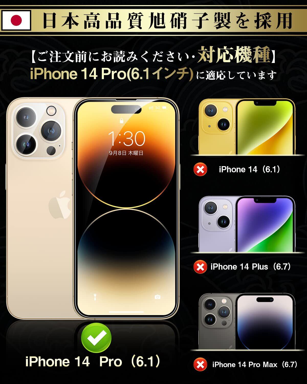 【超お得な4枚セット!ご注文前にお読みください・対応機種】iphone14 Pro (6.1インチ) に適応しています! このパッケージはスクリーンの保護装置を含んでいます + レンズの保護装置 + 取付枠、あなたが別に買うために行く必要はありません、携帯電話の画面からレンズまで二重の保護,組合せセットはあなたがあなたのために支払うものを得ることを感じさせます、取付枠は取付けをより容易にすることができ、インストール プロセスで泡を作り出しません、質を心配しないで下さい!