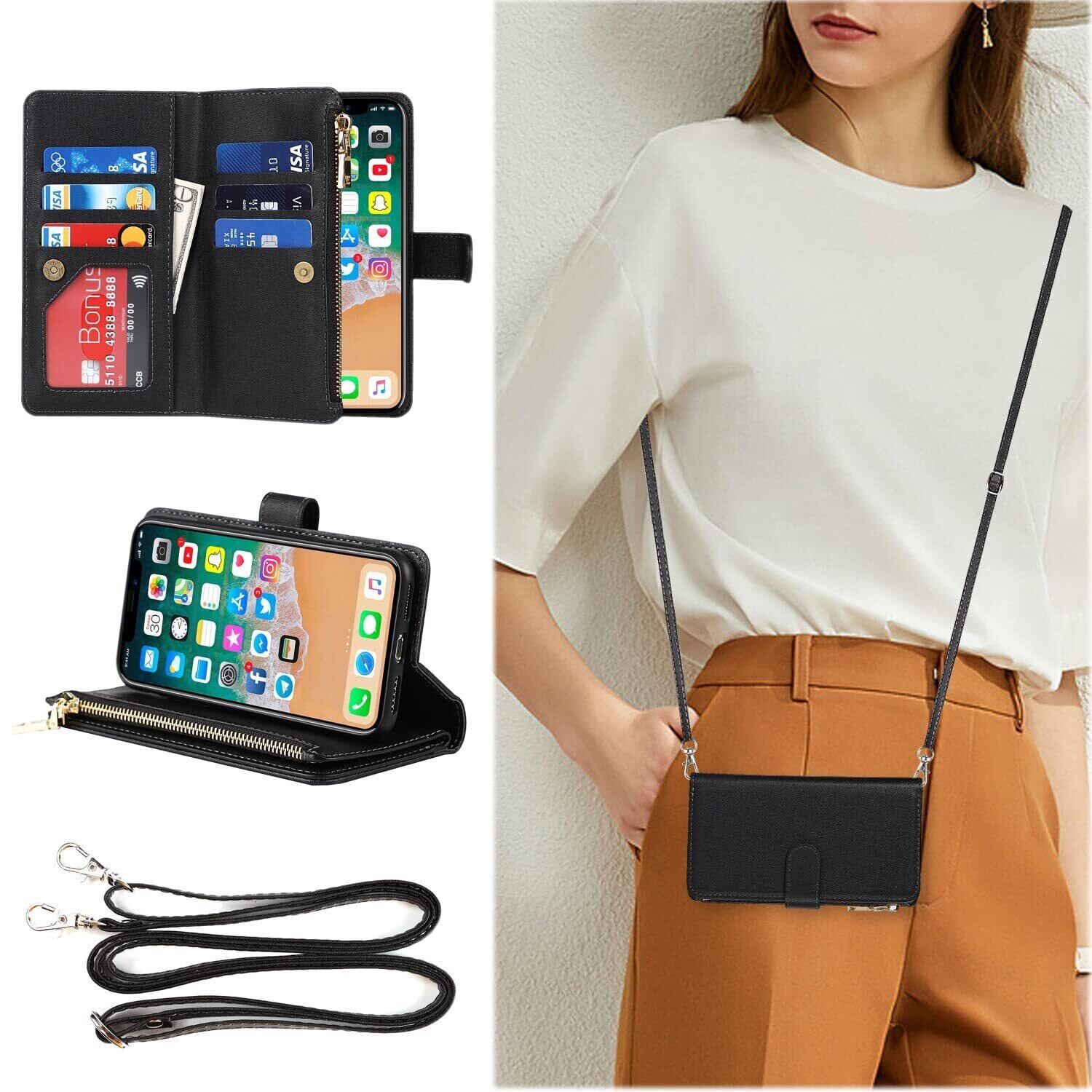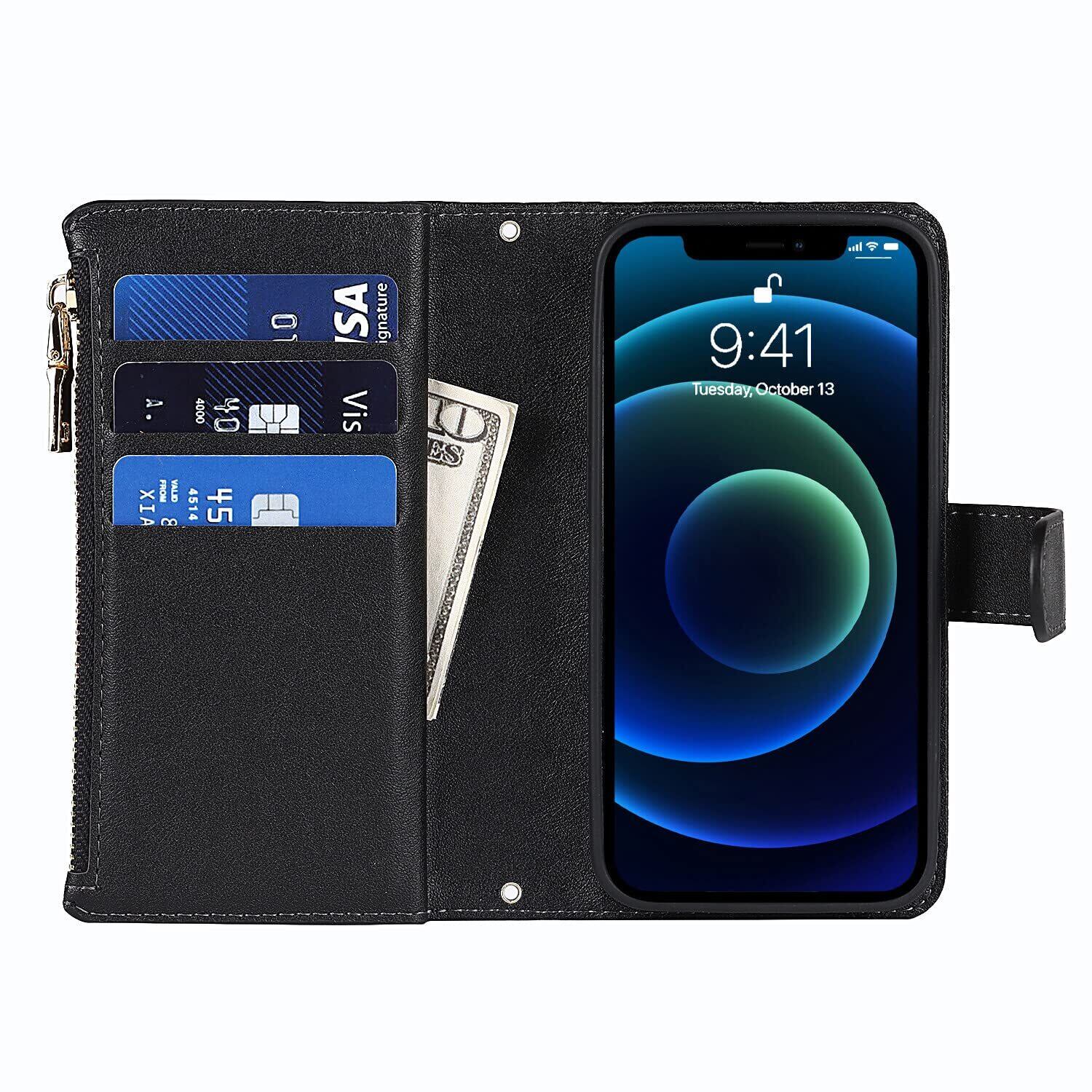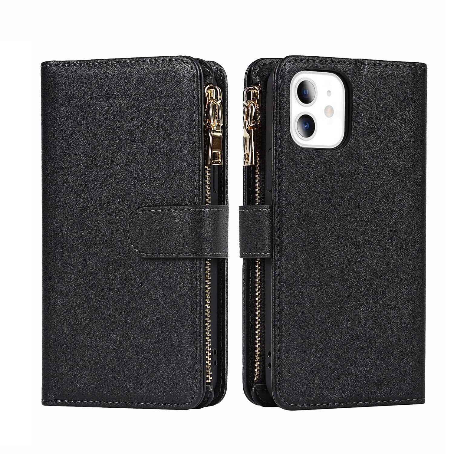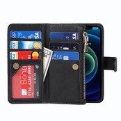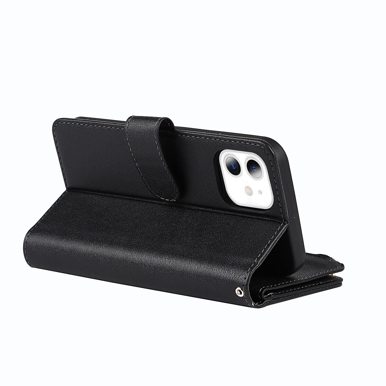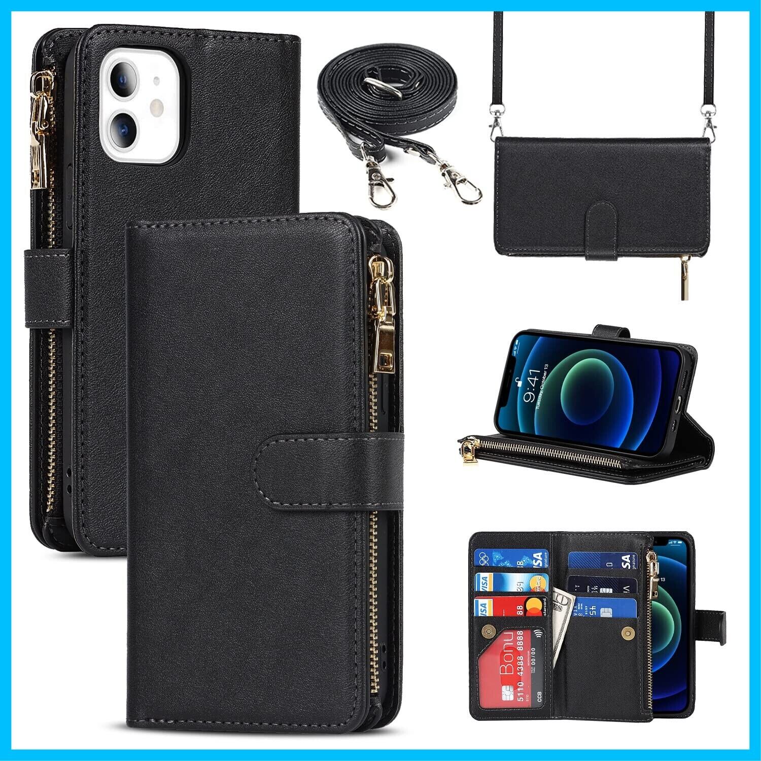 Pelanty for iPhone 12 Mini 縄掛けケース for iPhone12 Mini 手帳型 携帯カバー 肩掛け首かけ斜めがけ ショルダー 合成皮革+TPU マグネット 財布型カバー ICカード お札入れ小銭入れ大容量 収納ポケット スタンド機能 アイフォン12ミニ スマホケース ストラップ付き 落下防止 耐衝撃 耐摩擦 全面保護(肩縄付き-ブラック)