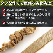 【専用ナイロン、高品質ゴムで丈夫!】高品質の防水ナイロンと弾性ゴムでタフな作りです。屋外の厳しい環境でもしっかり保護され、摩耗や劣化防止してくれます。各種装備との接触による損傷防止にも◎です。