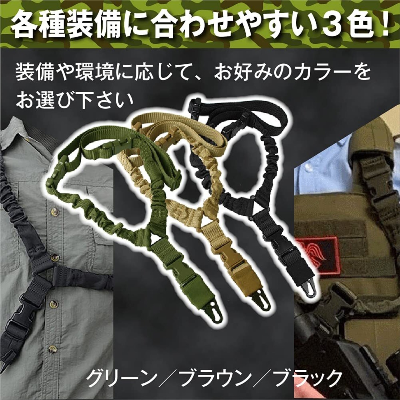 shttown サバゲー スリング 簡単装着 両手フリー 1点支持 タクティカルスリング ミリタリー 軽量 3色 (ブラック)