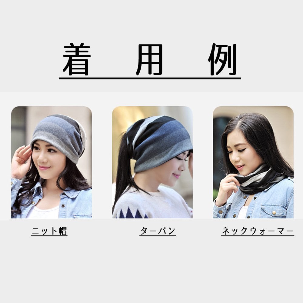 【サイズ】55~59cm 【メイン素材】ポリエステル 【仕様】男女兼用、3WAY(ニット帽、ターバン・ヘアバンド、ネックウォーマー) ※モニター環境や照明のあたり方、屋内外の違いにより画像と実物は色味の印象が異なる場合がございます。