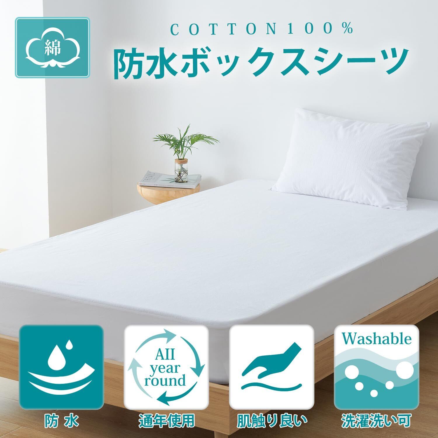 クモリ(Kumori) 防水ボックスシーツ ダブル 綿100% 防水シーツ 抗菌防ダニ 洗える おねしょ対策 全周ゴム付き ズレ防止 ベッド・マットレス・敷き布団対応 介護にも オールシーズン 140X200cm ホワイト
