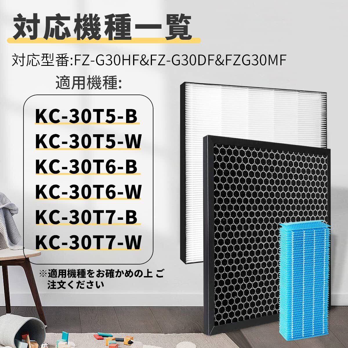 J&H 加湿空気清浄機 FZ-G30HF FZ-G30DF FZ-H30DF FZ-G30MF 集塵 脱臭 活性炭 加湿フィルター kc-30t5 kc-30t6 kc-30t7 空気清浄機交換用 1セット