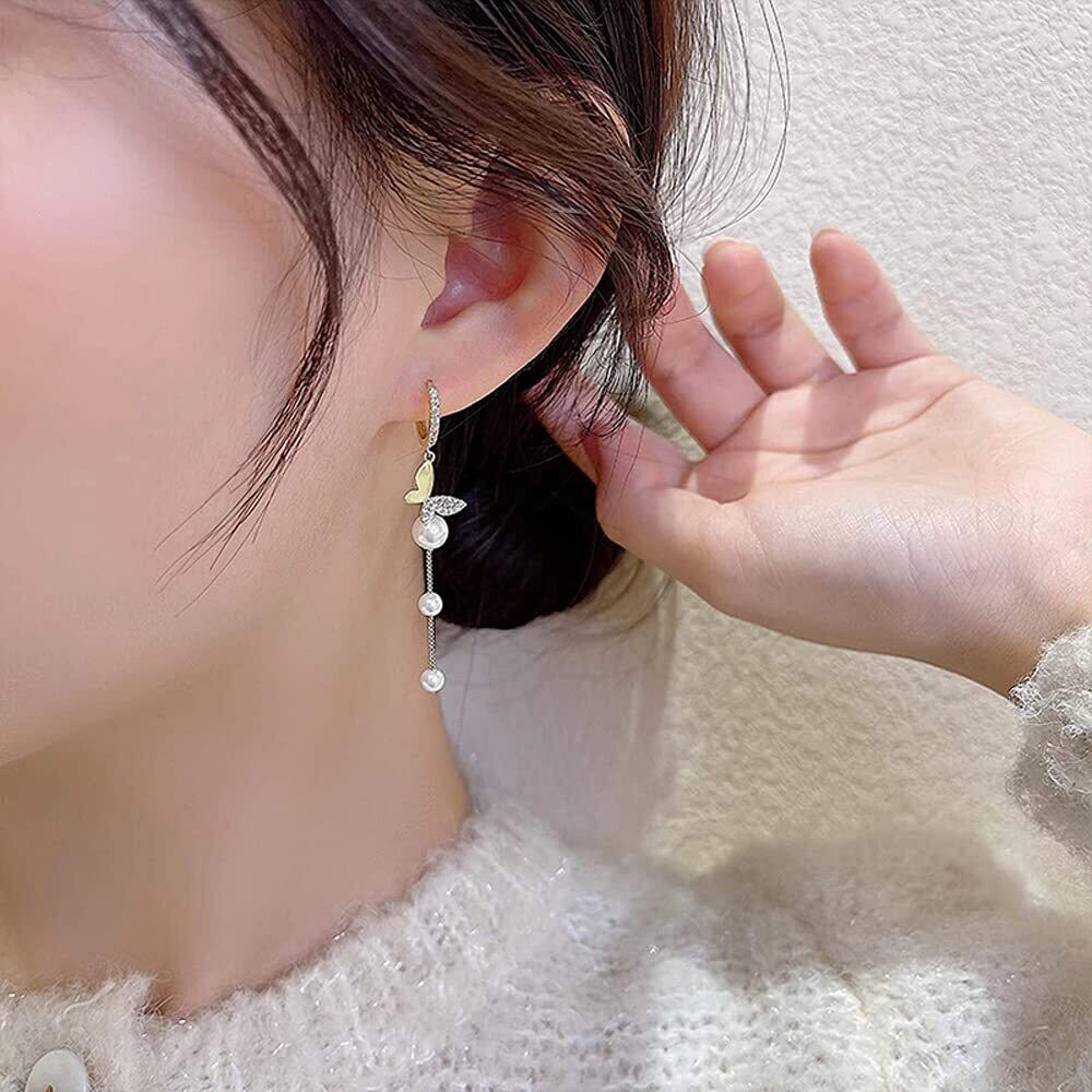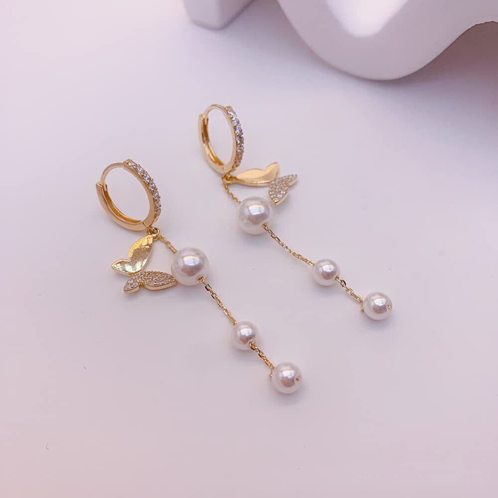 MIKAMU 蝶々 フープピアス レディース 人気 ジルコニア 18K 18金 人気 レディース パール フープピアス 安心の 金属アレルギー対応 ギフト 専用ボックス付き
