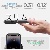 【MagSafe / ワイヤレス 充電 対応】程よい厚さで設計してケースを装着したまま「ワイヤレス充電」が行えます。MagSafe高速充電は可能ですが、MagSafe専用マグネットが搭載されていないため付着は対応していません。