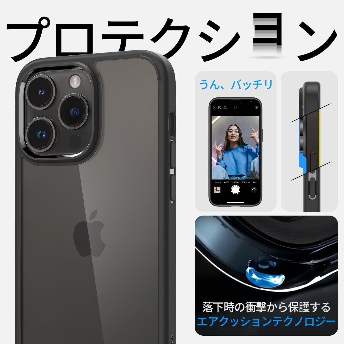 Spigen iPhone14Pro ケース 衝撃吸収 耐衝撃 ストラップホール付き 米軍MIL規格取得 黄変なし TPU バンパーケース 2重構造 すり傷防止 ワイヤレス充電対応 ウルトラ・ハイブリッド ACS04961 (マット・ブラック)
