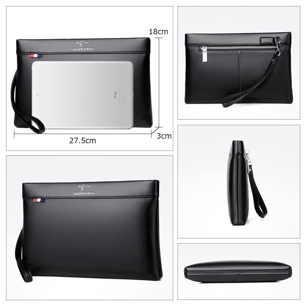 2way 天 然 牛革 セカンドバッグ メンズ バッグ クラッチ バッグ 本革 厚手 レザー B5カード6 枚収納可 小銭入れ 札入れ手持ちバッグ 結婚式 バッグ フォーマル ビジネス 冠婚葬祭 バッグ 男性用 紳士用 黒 G6660 (黒A)