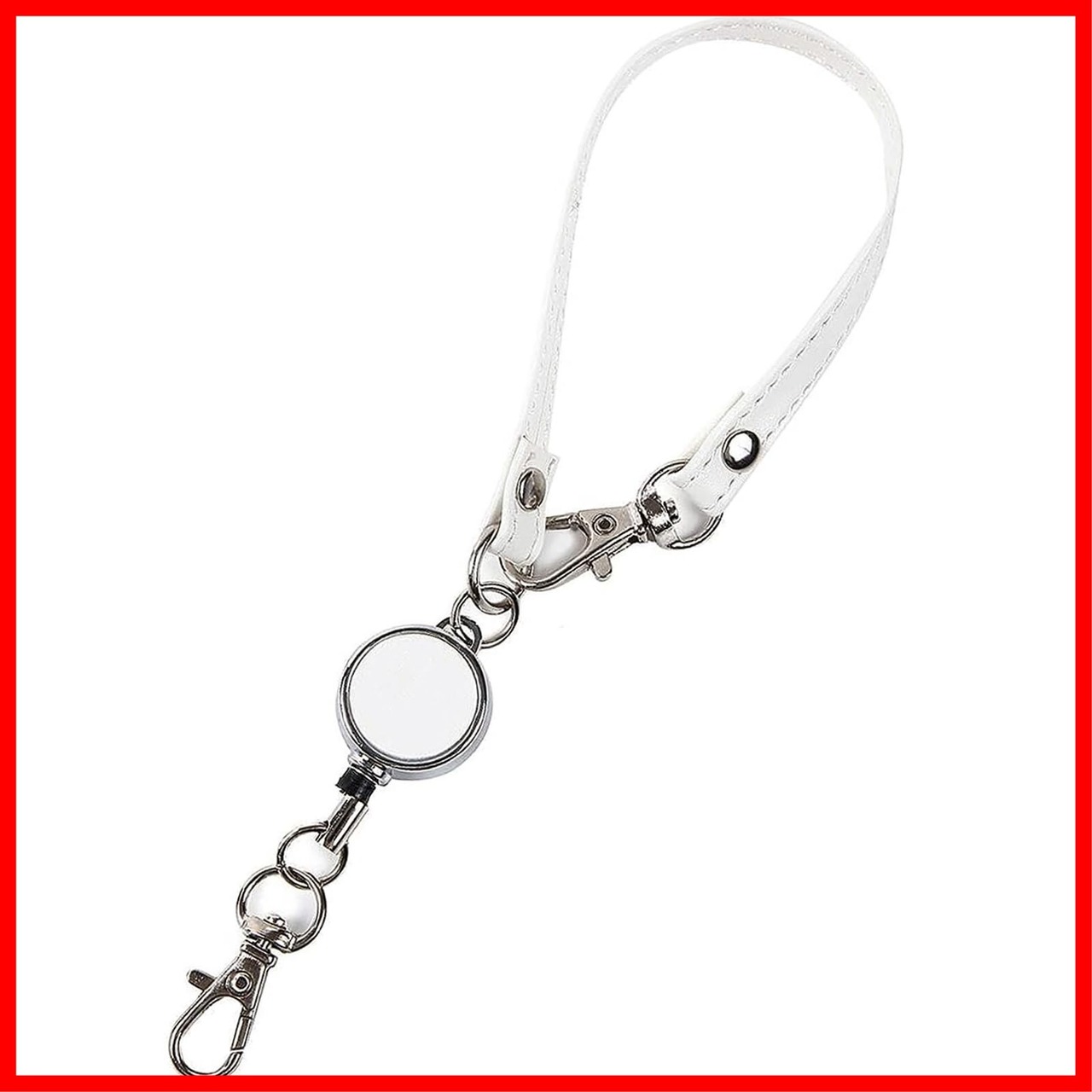 リールストラップ リール付き 伸びるリールストラップ 白 ホワイト パスケース 定期入れ 鍵 キーチェーン リールキーホルダー リール付きストラップ キーホルダー 白色 革 レザー リール型ストラップ
