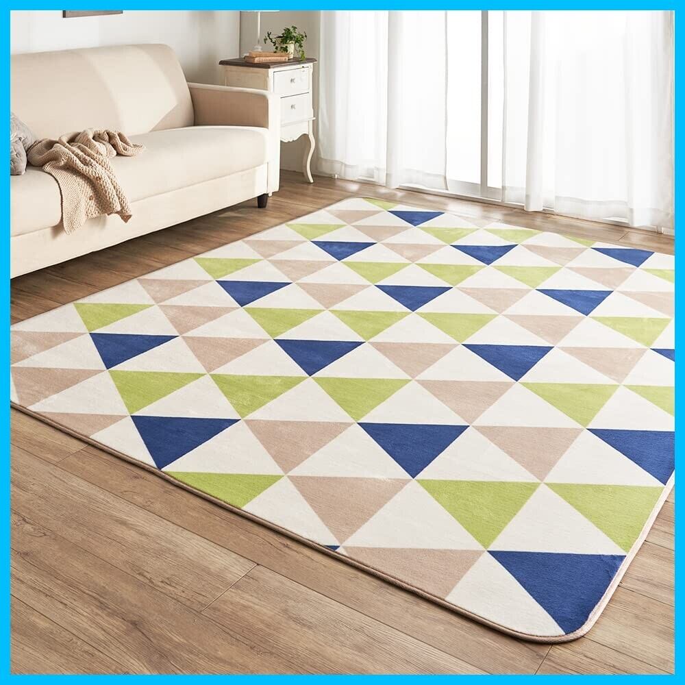 アイリスプラザ フランネルラグ トライアングルグリーン 185×185㎝ 滑り止め付き ラグ 洗える ラグカーペット マット カーペット対応 防ダニ フランネル さらフワ触感 おしゃれ 北欧 じゅうたん