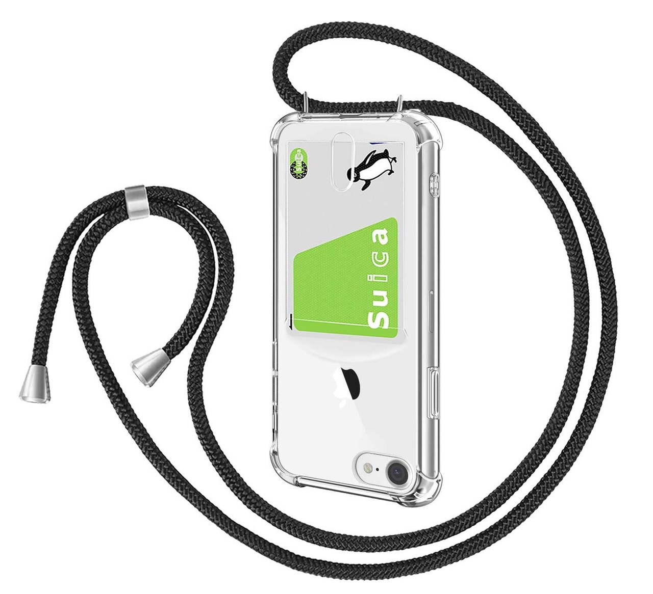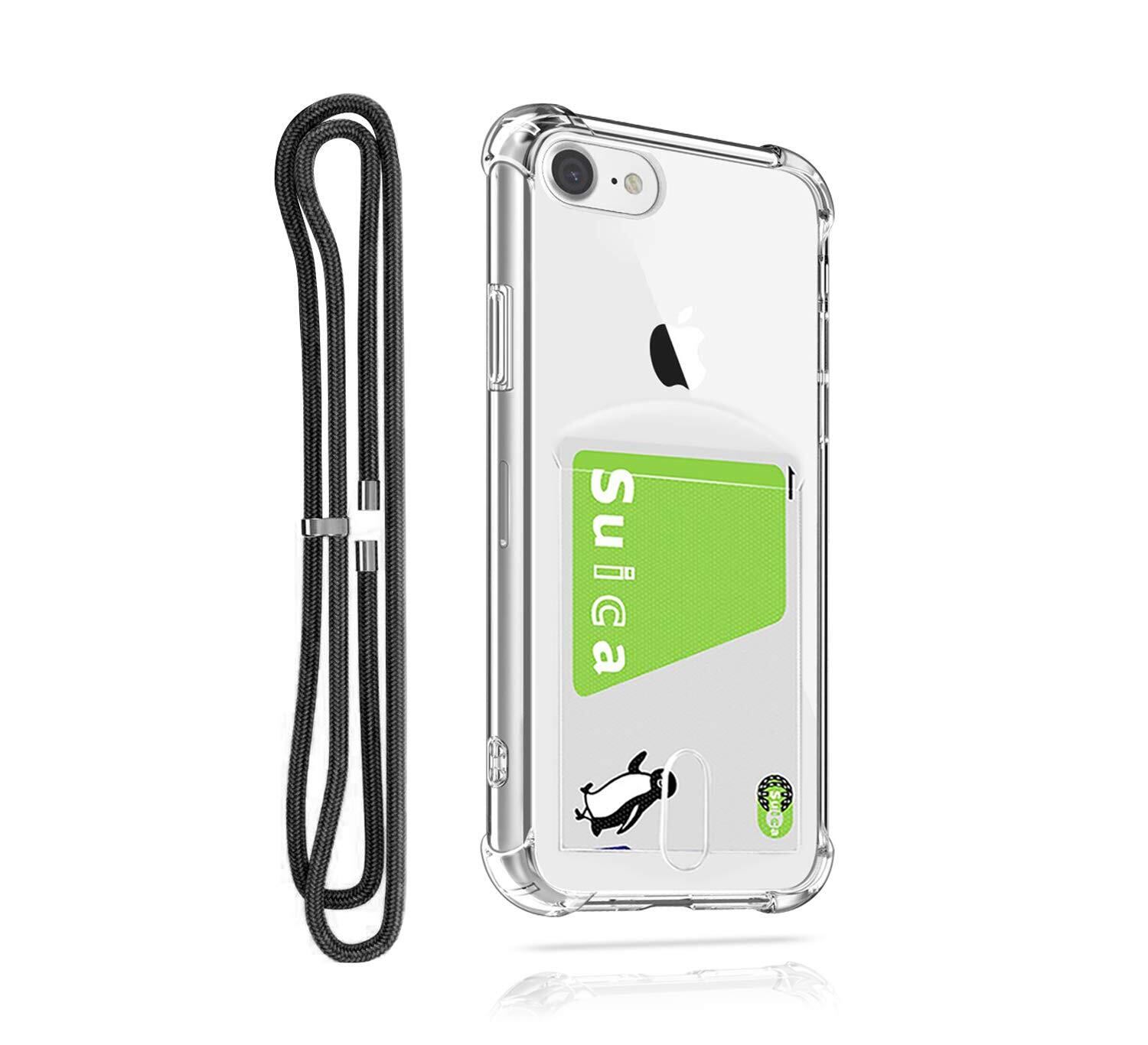 Pelanty for iPhone SE 2020 第2世代/SE 2022 第3世代 縄掛けケース for iPhone 7/8 背面カバー クリアケース 柔軟シリコン 透明TPUバンパー ICカード収納 ネック ショルダー ストラップ付き アイフォンSE2/SE3/7/8 落下防止 衝撃吸収 指紋防止 薄型軽量 (縄掛け-透明)
