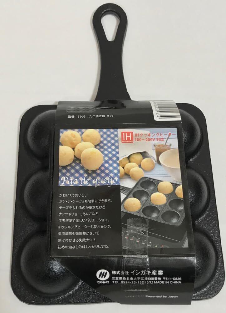 イシガキ産業 鉄鋳物 たこ焼き 9穴片手 3963 ブラック 幅16×奥行26.5×高さ3.2cm