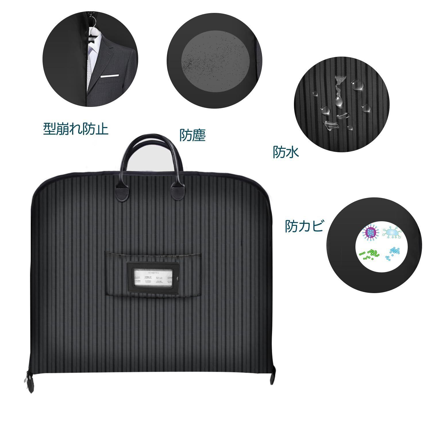 Gmasking ガーメントケース スーツ用 収納ケース 大容量 ガーメントバッグ 出張 旅行 ビジネス 冠婚葬祭 防水防塵 軽量 型崩れ防止 手提げ 男女兼用 ブラック 100×60CM