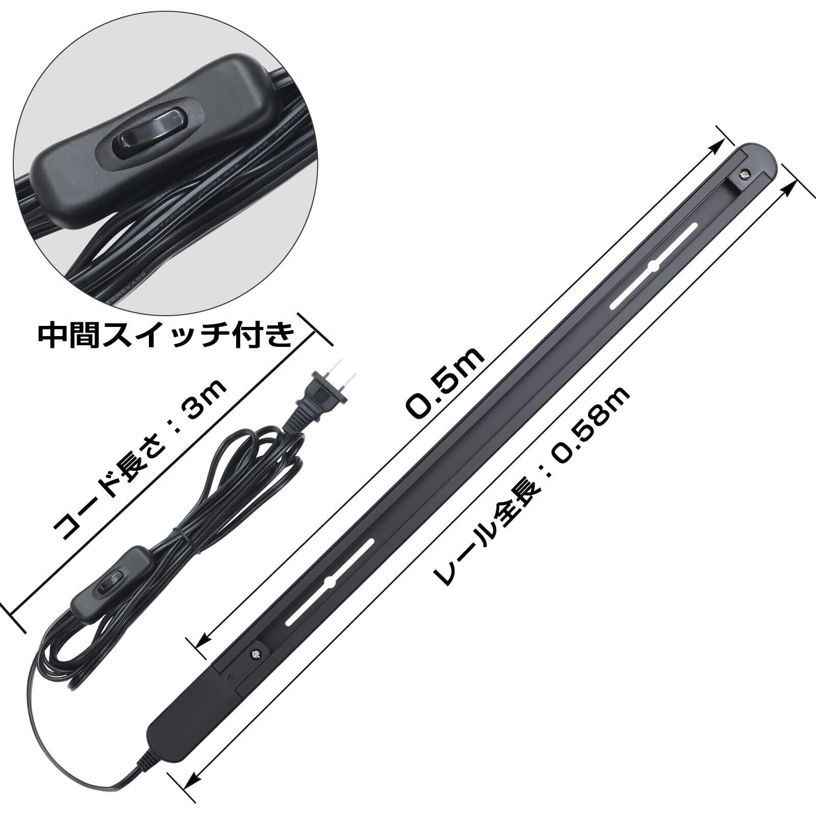 szbritelight ダクトレール コンセント 0.5m スイッチ付き ライティングバー コード型 簡易取付 工事不要 植物育成 インテリア 天井照明 レール 照明用 (ブラック, 0.5m)