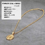 チェーン&トップは耐久性抜群のステンレス316L素材を使用! 更に表面に18金で特殊コーティングを施し、高級感があり、色も長持ち可能!