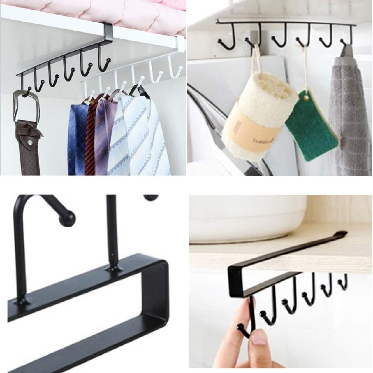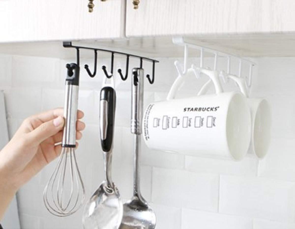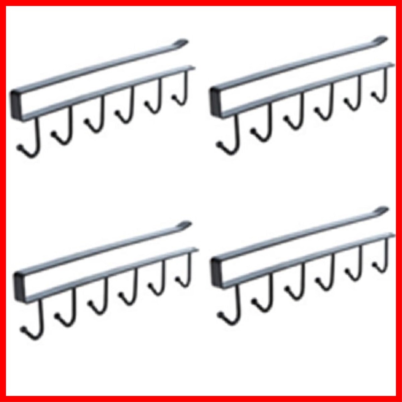 キッチンツールフック(シングル4個セット) 戸棚下キッチンツールフック キッチン収納 キッチン収納 吊戸棚 カップホルダー ラック クローゼット空きスペース有効活用にも便利 棚上部の空きスペースにも (シングル4個 ブラック)