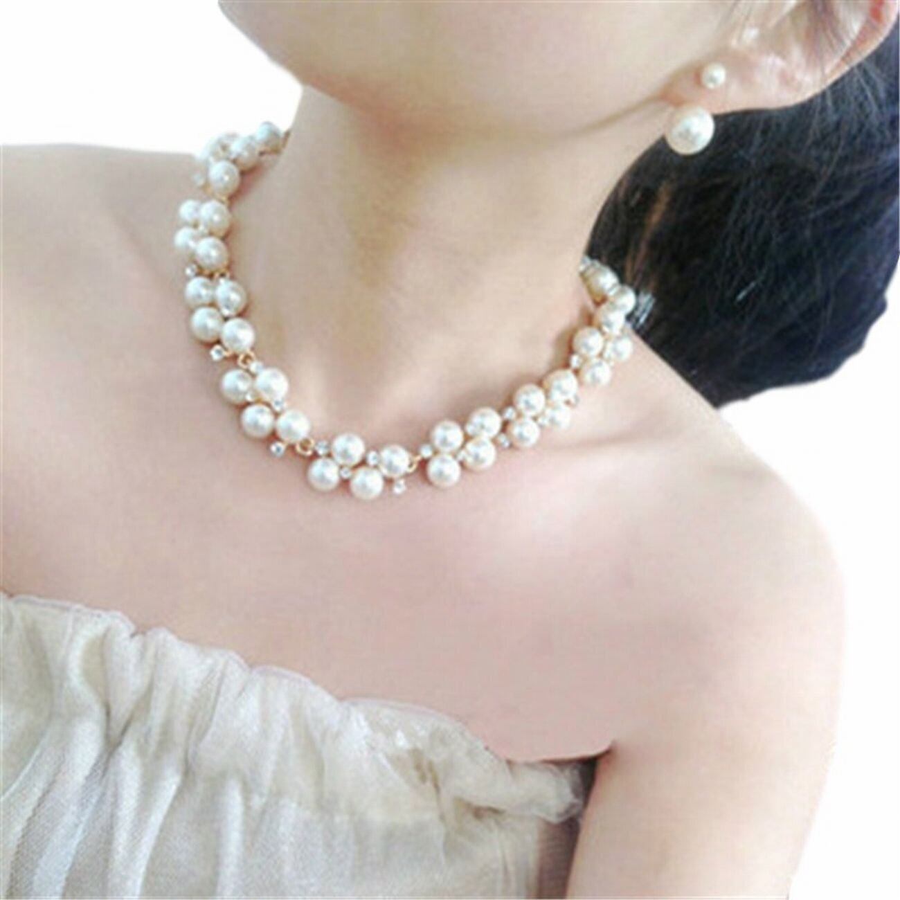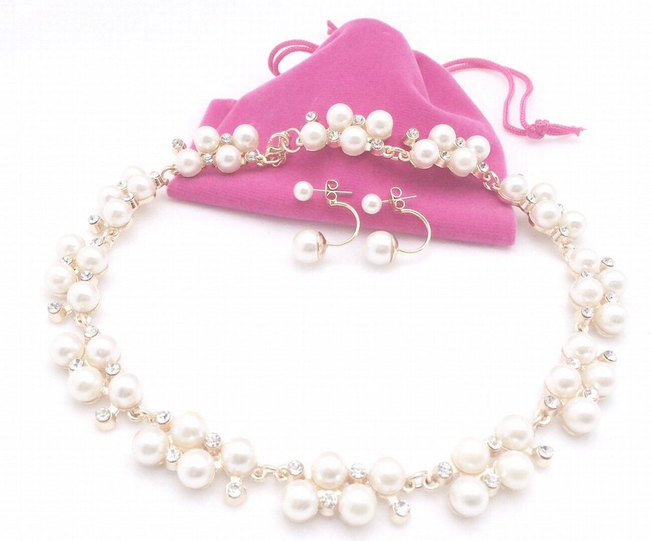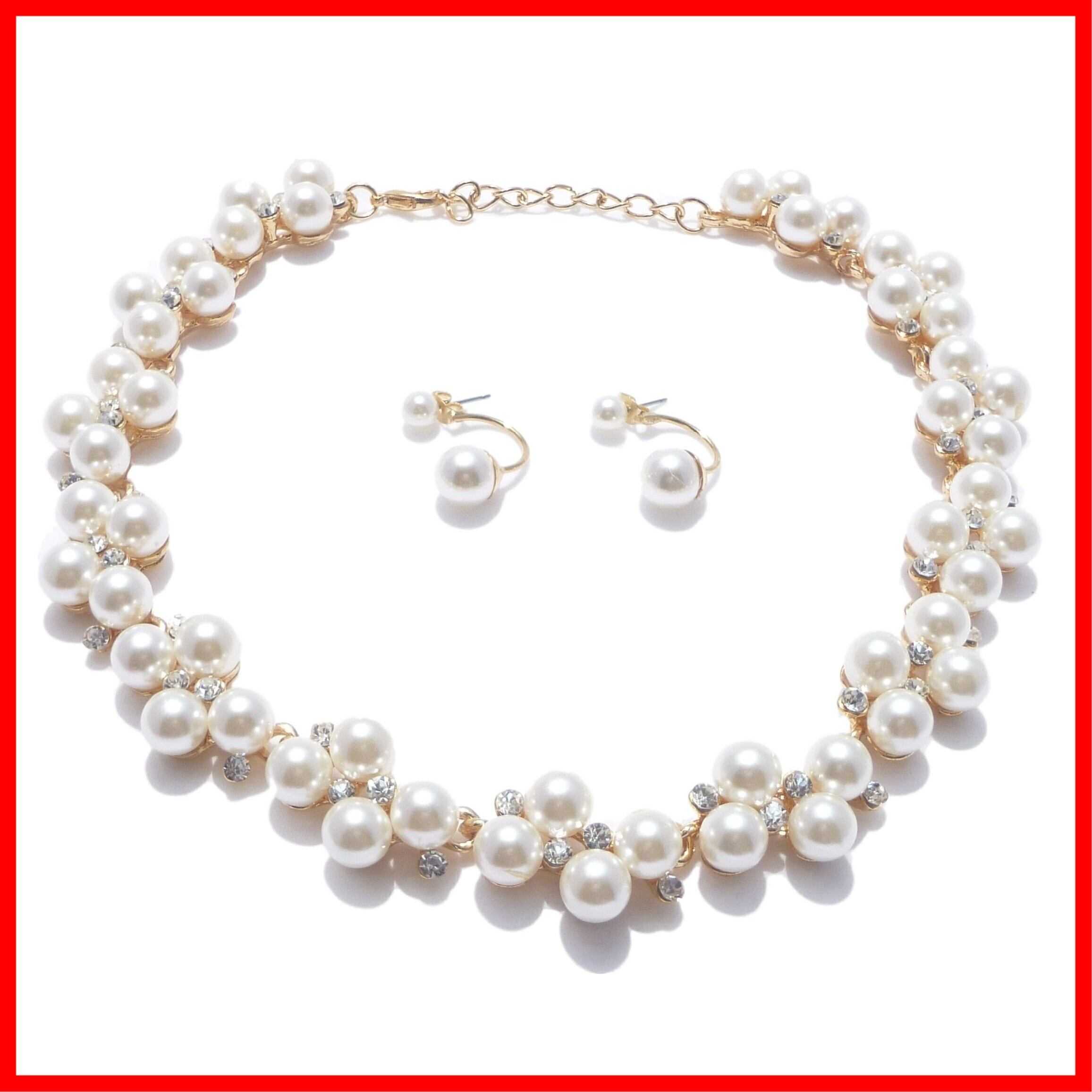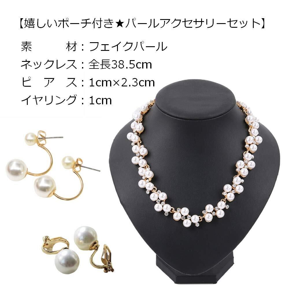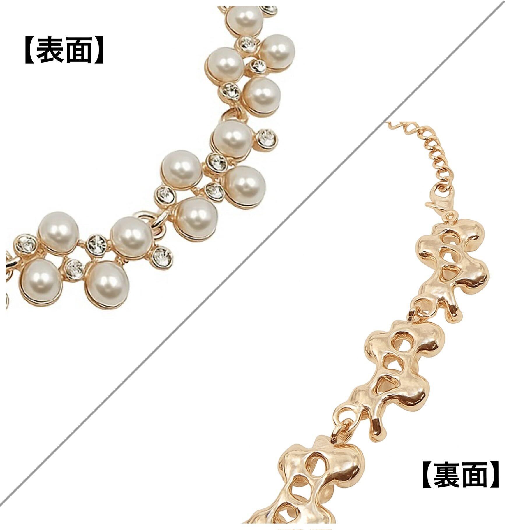 ビジュー ネックレス ピアス パール ラインストーン 結婚式 パーティー 普段使い (ネックレス・ピアス)