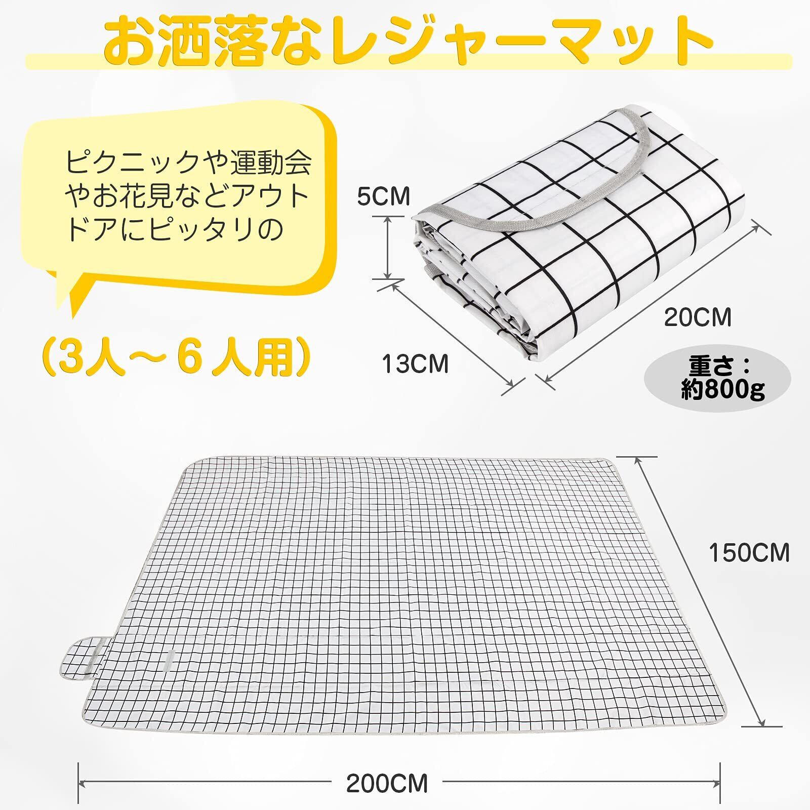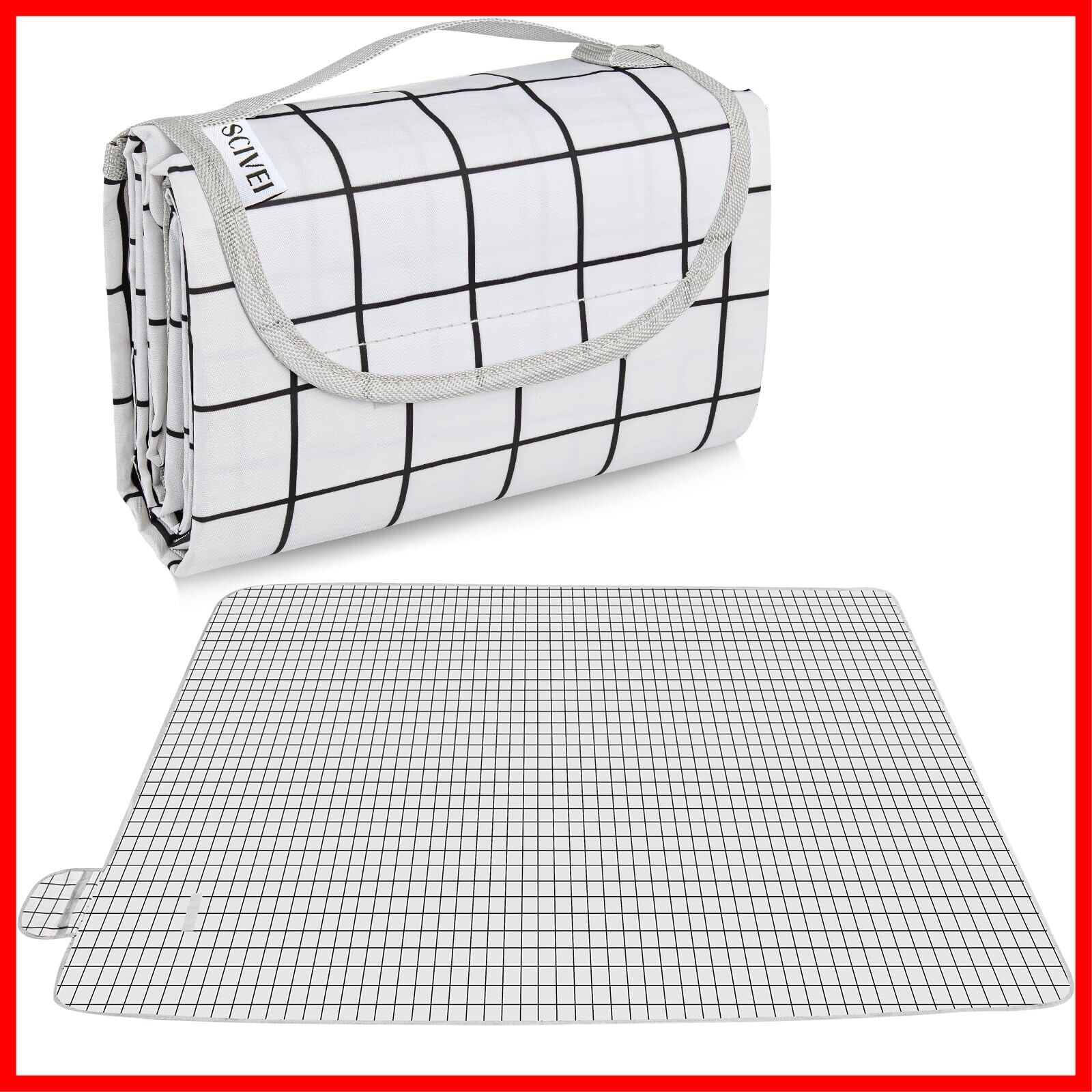SCIVEI レジャーシート ピクニックマット 大判 150x200 cm 3~6人用 折りたたみ 防水 防湿 コンパクト収納 携帯便利 軽量 遠足 運動会 お花見 キャンプ アウトドア チェック柄(ホワイト)