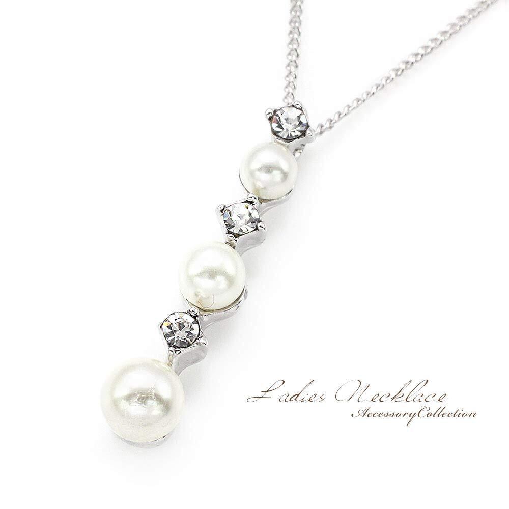 パールネックレス パールのネックレス レディース アクセサリー 結婚式 二次会 パーティー お呼ばれ 3粒 パールペンダント おしゃれ きれいめ シルバー
