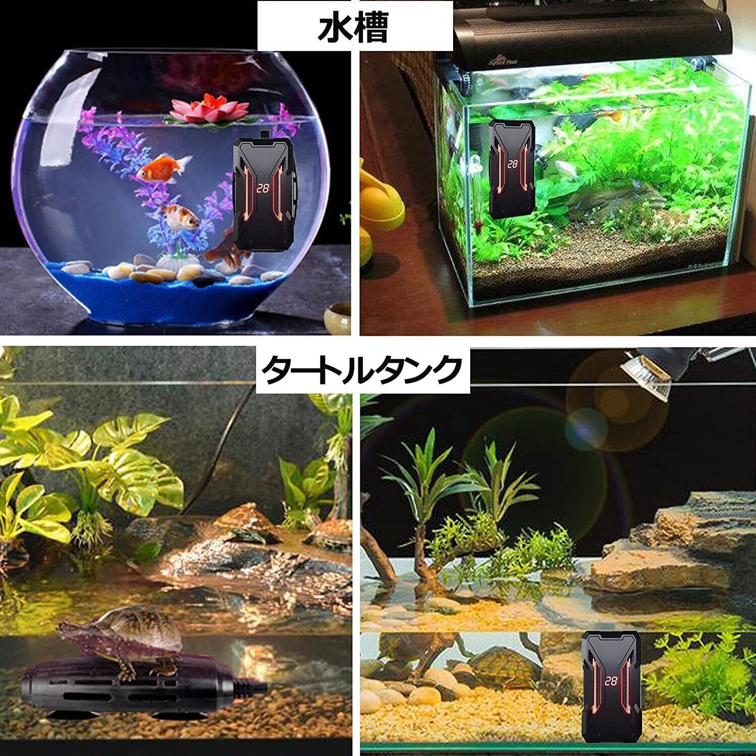 ■【知能水温管理】■小型ヒーターは内蔵のAIチップを搭載して周波数変換機能を実現します。加熱初めた時は最高電力で急速加熱な効果を実現しています。設定温度に近づくと加熱電力が徐々に低下します。設定温度に到達すると低電力で温度を安定して、全天候で魚に安全と快適な生活環境を提供しいてます。加熱電力は水槽の水温によって瞬時に変化して、省エネを実現します。