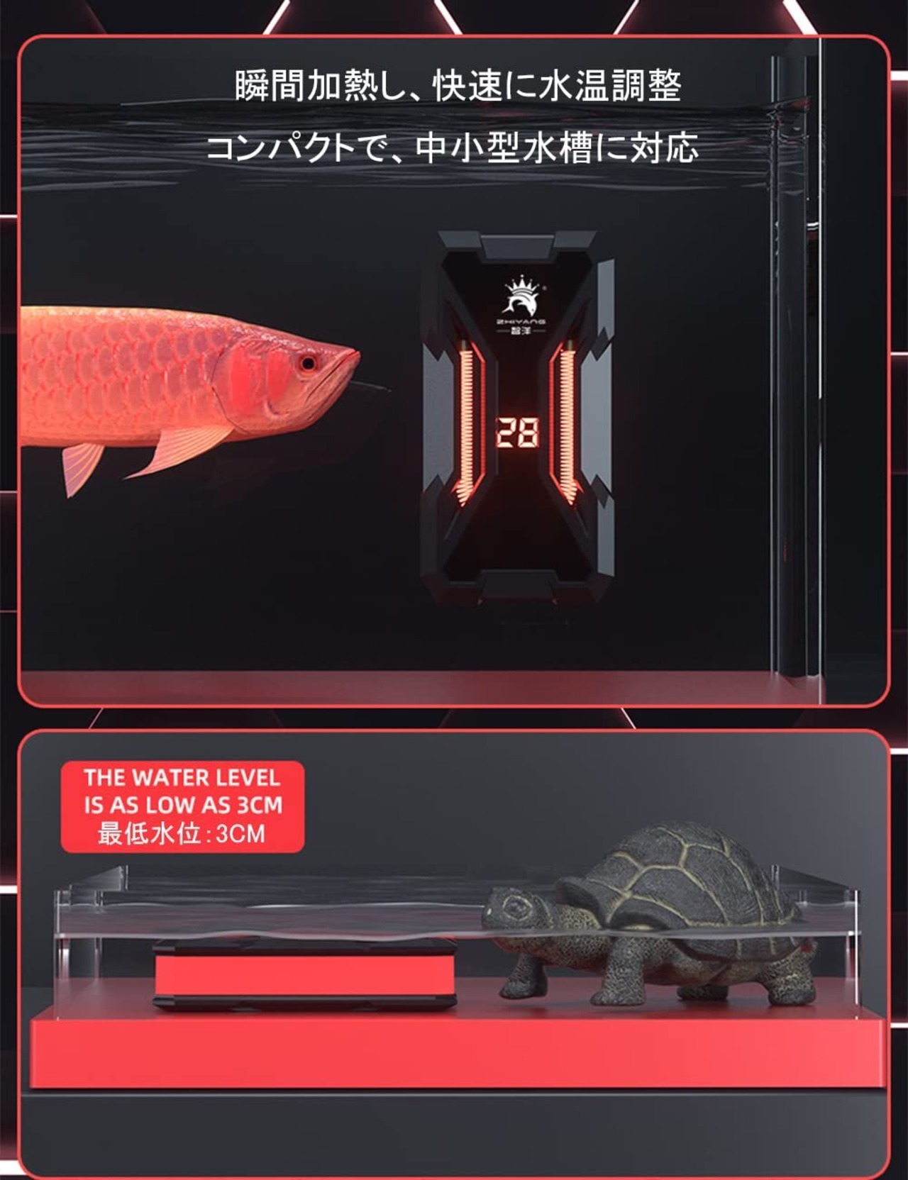 水槽 ヒーター 水槽用ヒーター 低水位ヒーター アクアリウム 水中 ヒーター 熱帯魚/観賞魚/亀用ヒーター 水温管理用 温度調整 急速加熱 過熱保護 防爆 安全加熱 インテリジェント恒温 低水位3CM 海水淡水両用 一体型 コンパクト 吸盤付き 中小型水槽対応 200W