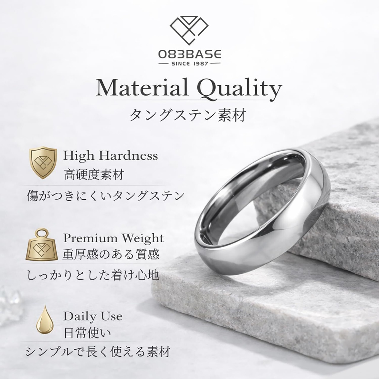 【丈夫で長く使いやすい素材】 タングステンは硬度が高く、日常使いでも傷がつきにくい素材として知られています。リング内側は滑らかな仕上げで、指通りがよく快適な着け心地です。