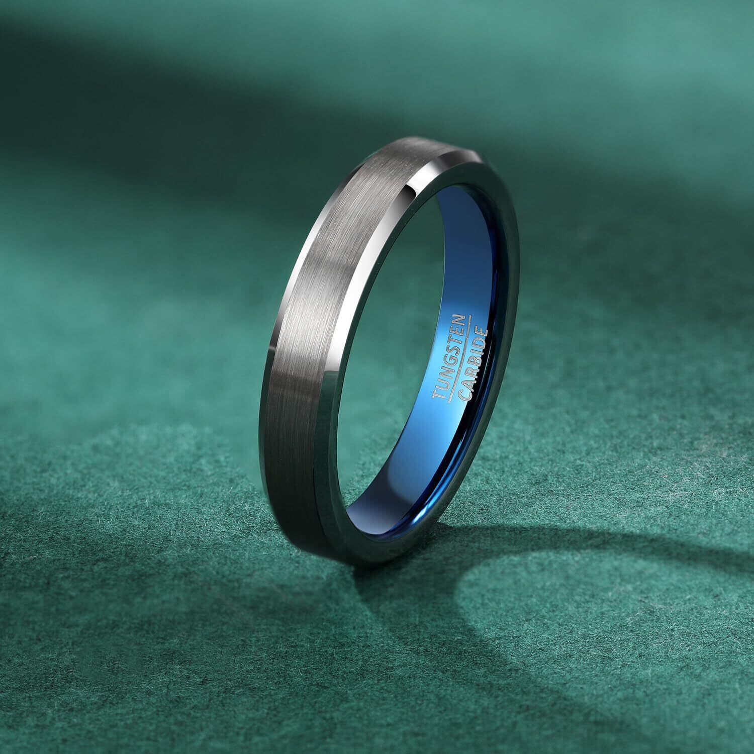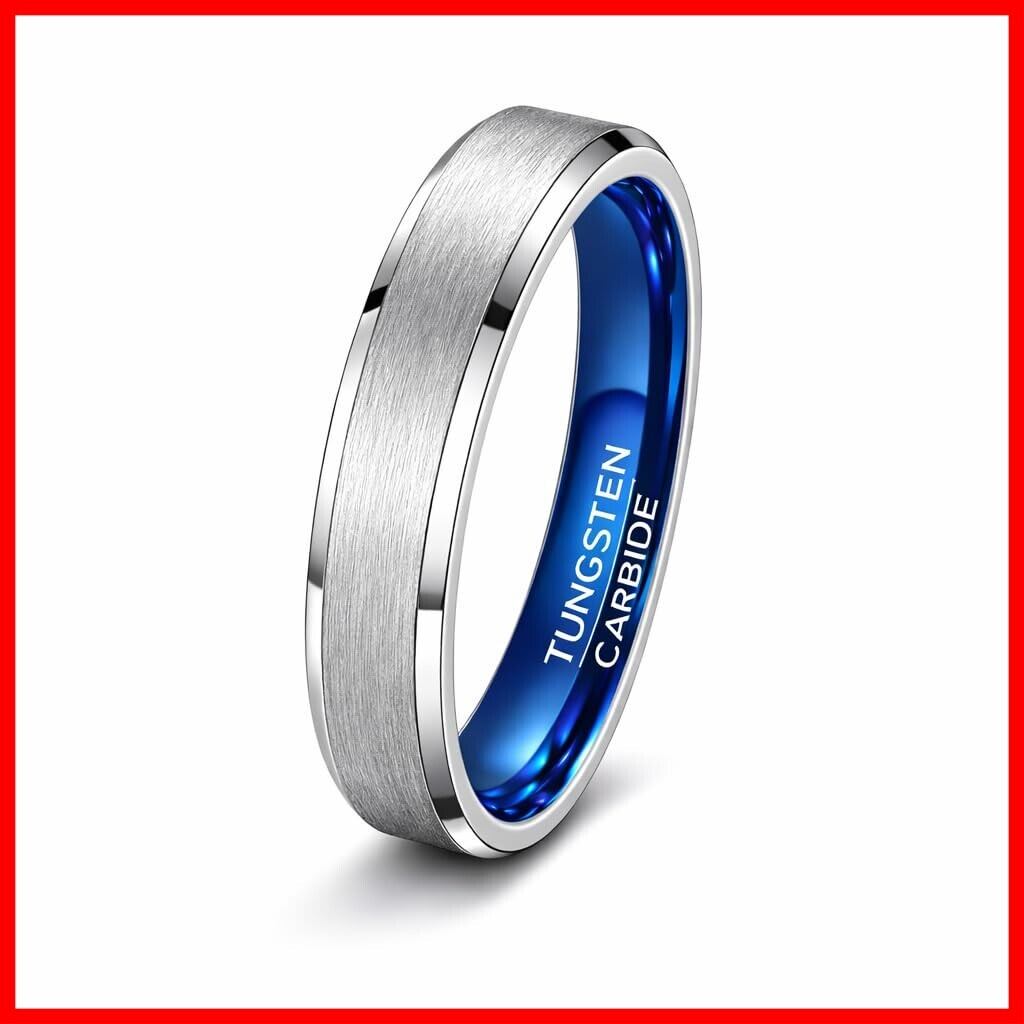 083BASE タングステン リング 指輪 メンズ レディース シンプル マット サイドカット 内側ブルー シルバー 4mm 16号