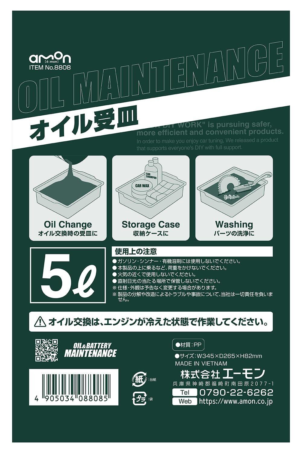 エーモン(amon) オイル受皿 5L W345×D265×H82mm オイル交換時の受皿に 収納ケースとして パーツの洗浄に 8808