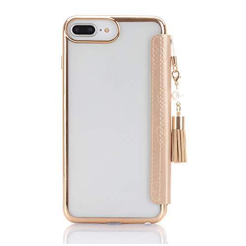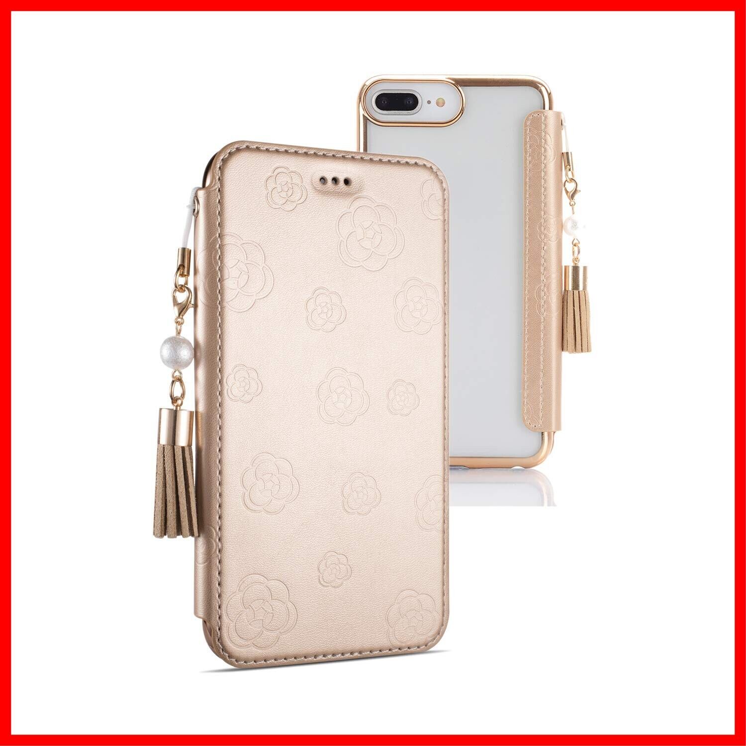 NicNik用の iPhone 8 手帳型ケース 可愛い おしゃれ 花柄 薄型 軽量 押し型のカメリア 夏 綺麗 鏡付き 携帯ケース NicNik向けの アイフォン 8 スマホケース 手帳型 クリア 透明バック PUレザー カッコいい ストラップ付 手作り カード入れ 財布型 女性 柔らかい ゴールド
