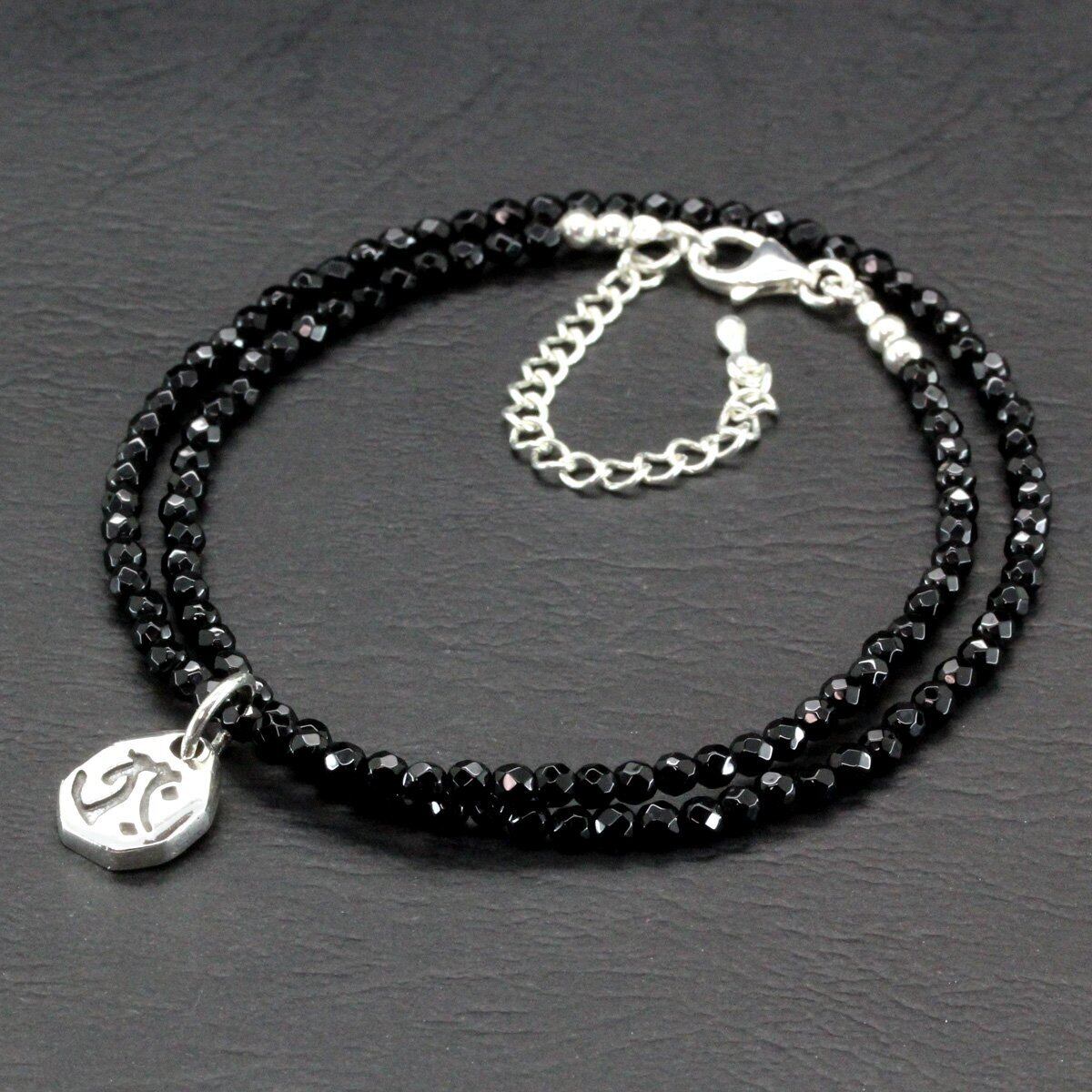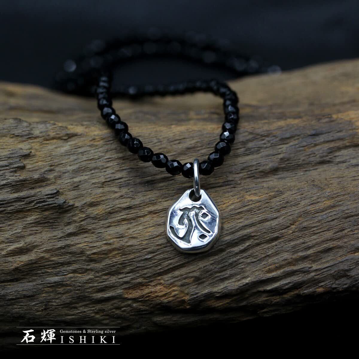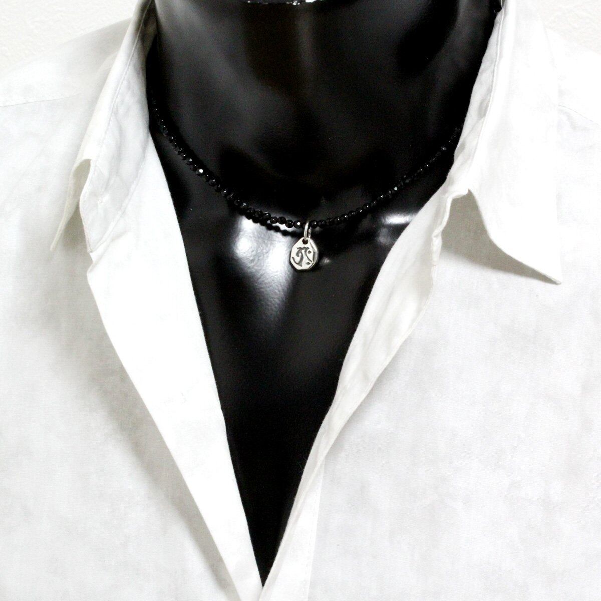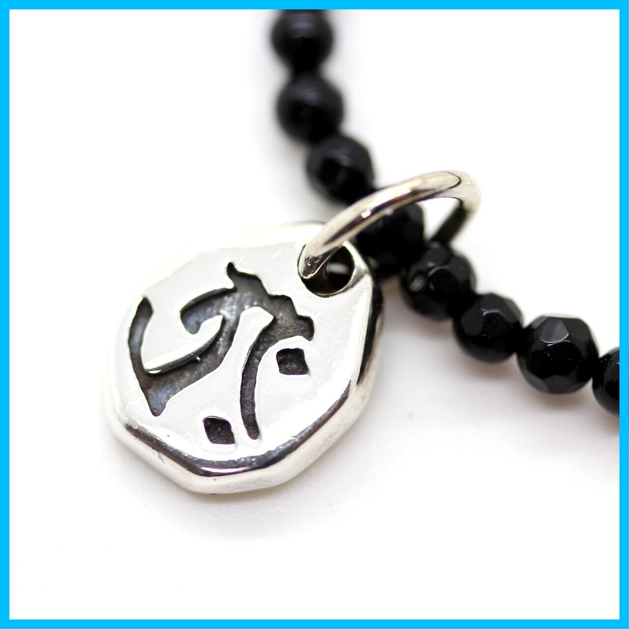 石輝 シルバー925に刻まれた丑虎生まれの梵字ペンダントに光り輝くカットオニキスネックレス 虚空像菩薩タラークsilver925 オリジナル巾着袋付き