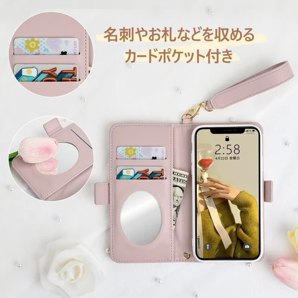 ✿多彩な機能性✿スマホケースの内側にはカードポケット2つとサイドポケット1つ付き,交通系カード、クレジットカード、レシート、お札などが収納できます。メイク直しミラー付き。外出先でお化粧直しや身だしなみチェックできる便利なアイテムです。