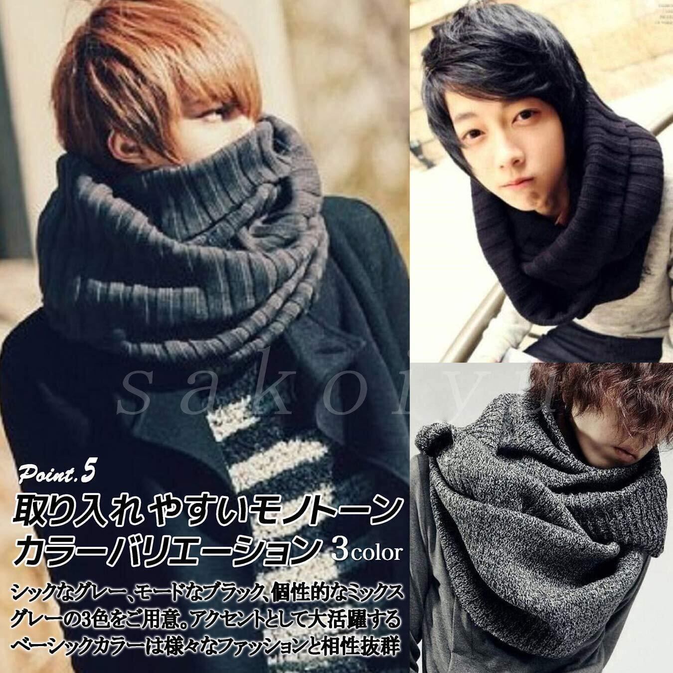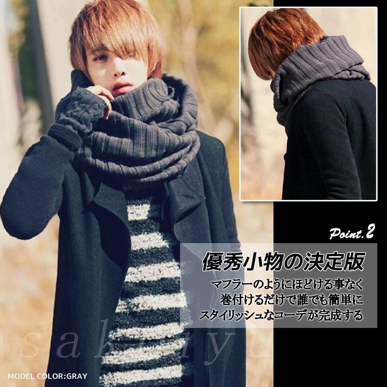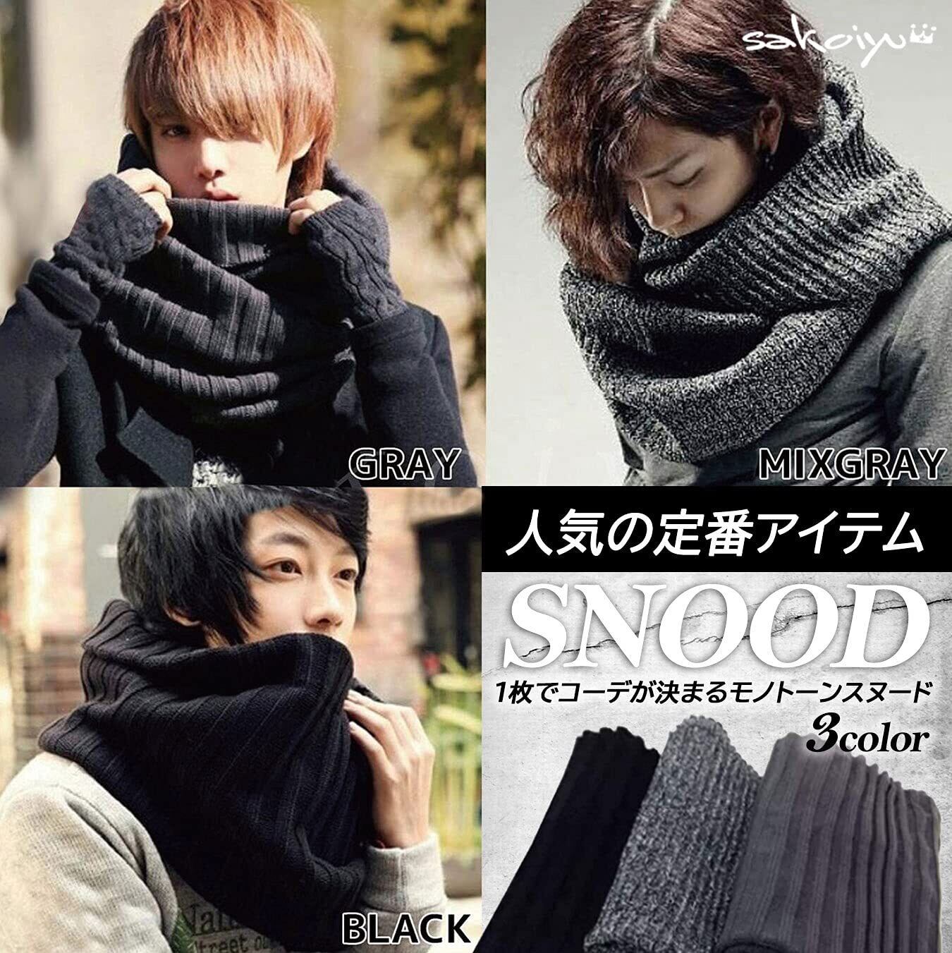1枚でコーデが決まるモノトーンのメンズ・スヌードです。コート・ジャケット・ブルゾン・カーディガン・パーカーのアウター・上着類やニット・シャツ・スーツ・ベストまでどんなコーデもスタイリッシュに◎