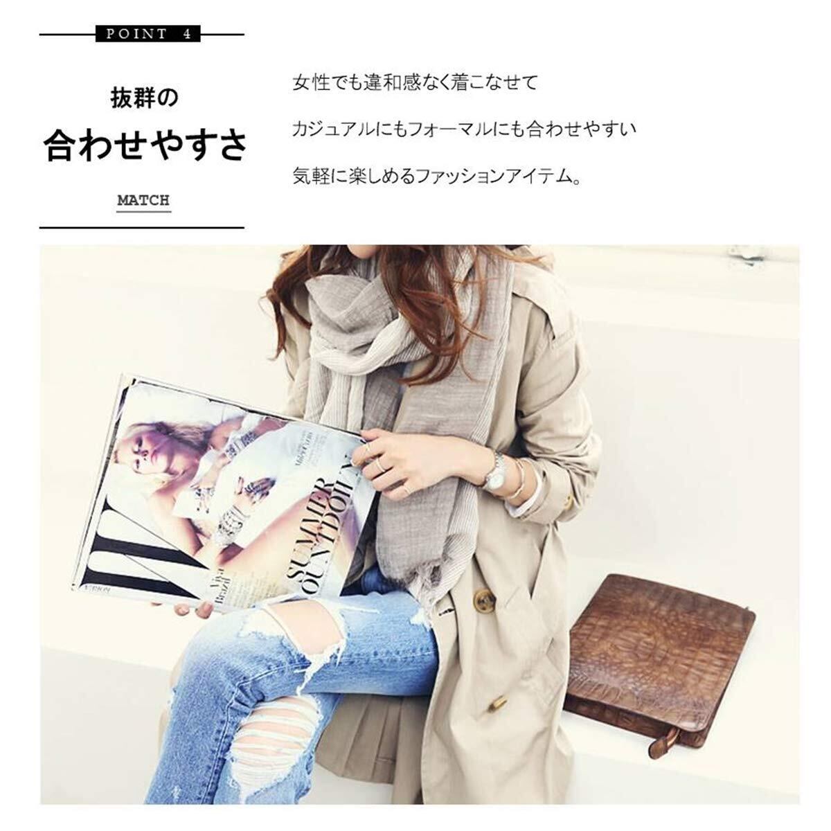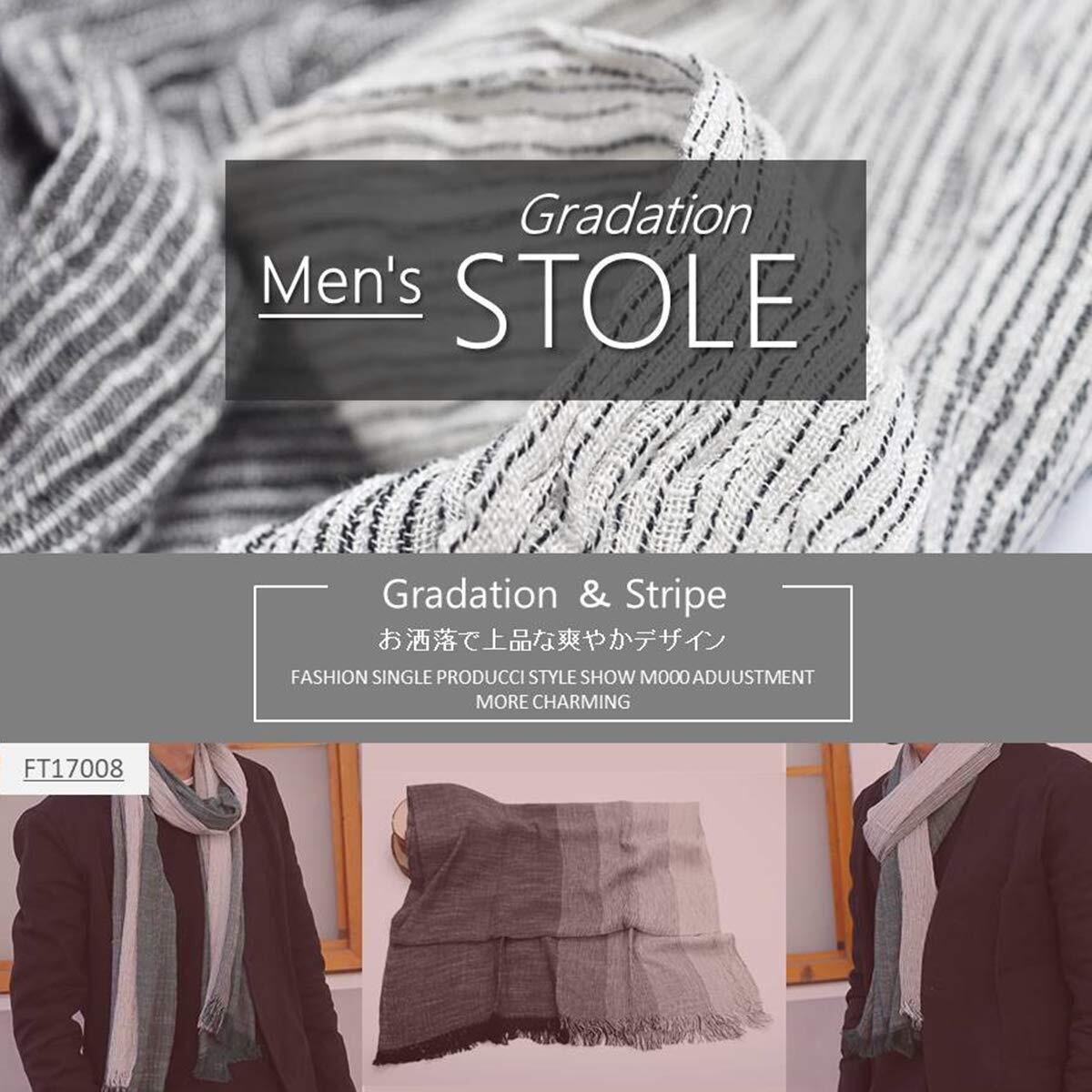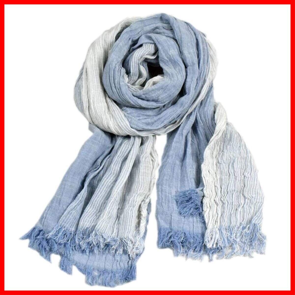 スタイル:オシャレの決め手はズバリ小物!! ・上品で大人のファッションに似合うグラデーションデザイン。 ・ストライプ柄をブラスする事で、涼しげで、爽やかな印象に仕上げてくれます。 ・直接肌に触れる生地には上質なコットン素材を使用。 ・サラッとした肌触りが気持ち良く、快適に巻く事ができます。 ・通気性も良く、日焼け対策としてもお使いいただける、ひとつ持っていると重宝するオールシーズンタイプ。