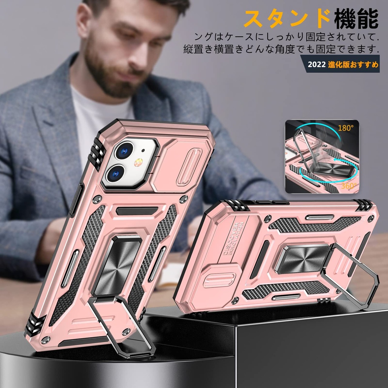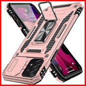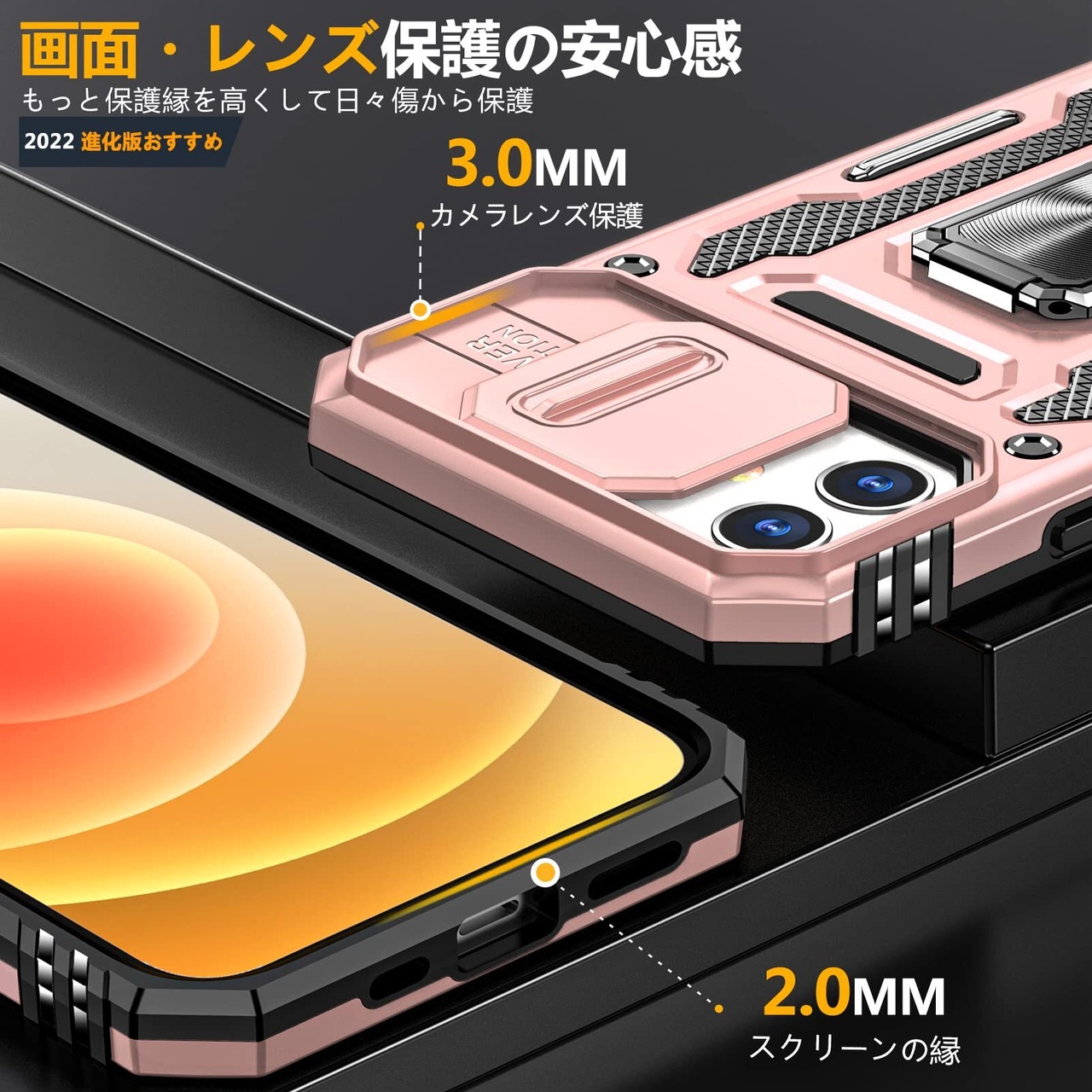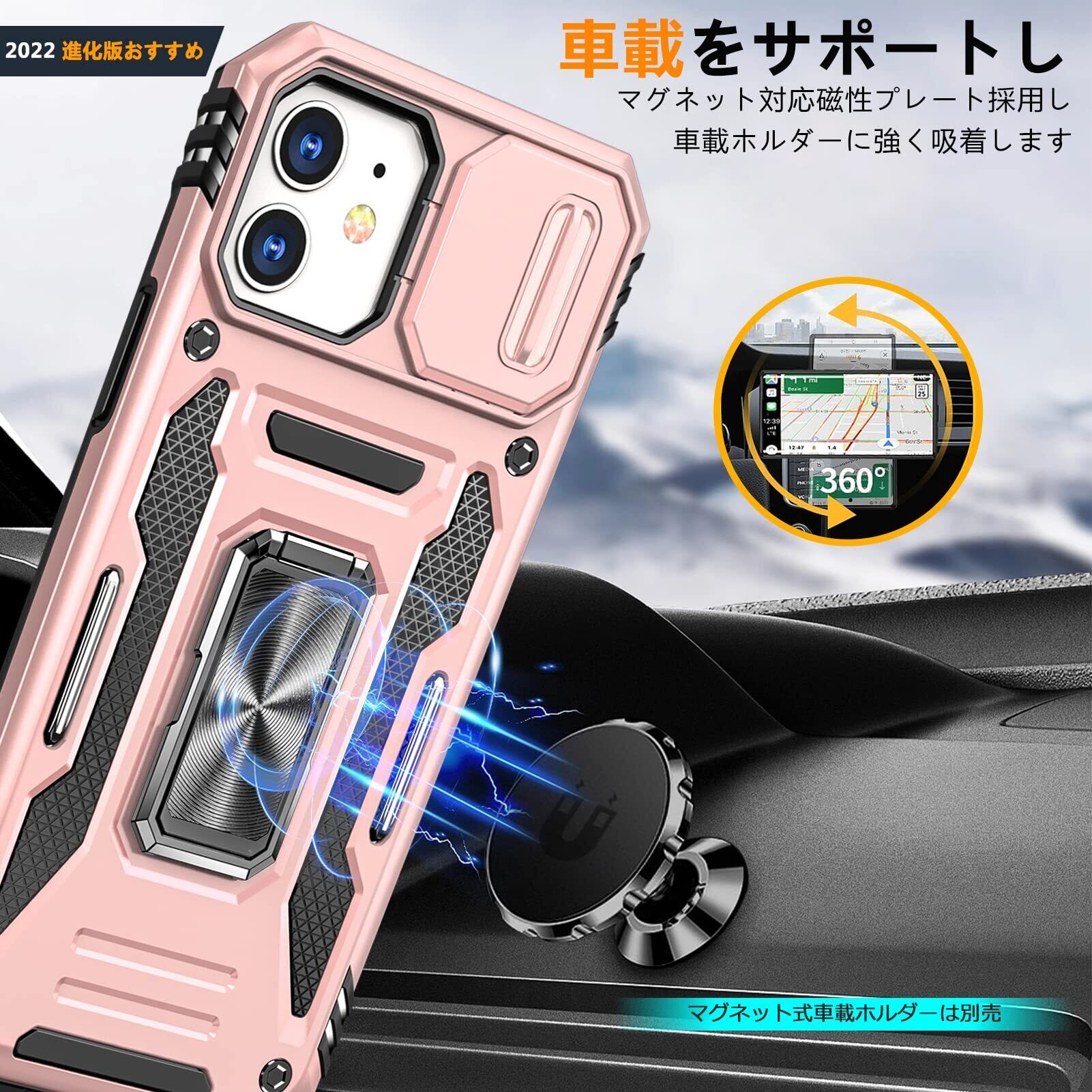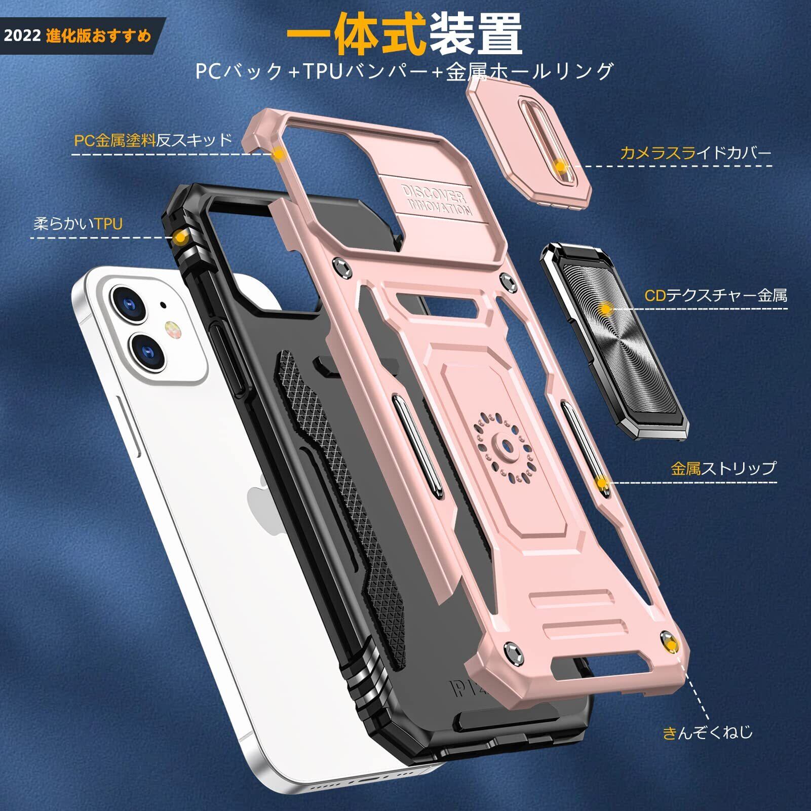 Galaxy A53 5G 用 ケース リング付き スライド式カメラプロテクター付き PC 米軍MIL規格取得 耐衝撃 スタンド機能 車載ホルダー対応 擦り傷防止 滑り止め 格好いい おしゃれ 人気 サムスン ギャラクシー A53 5G カメラカバー ローズゴールド MDYS-KJ-10-04