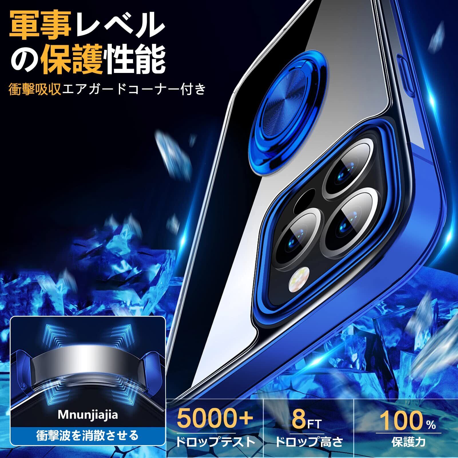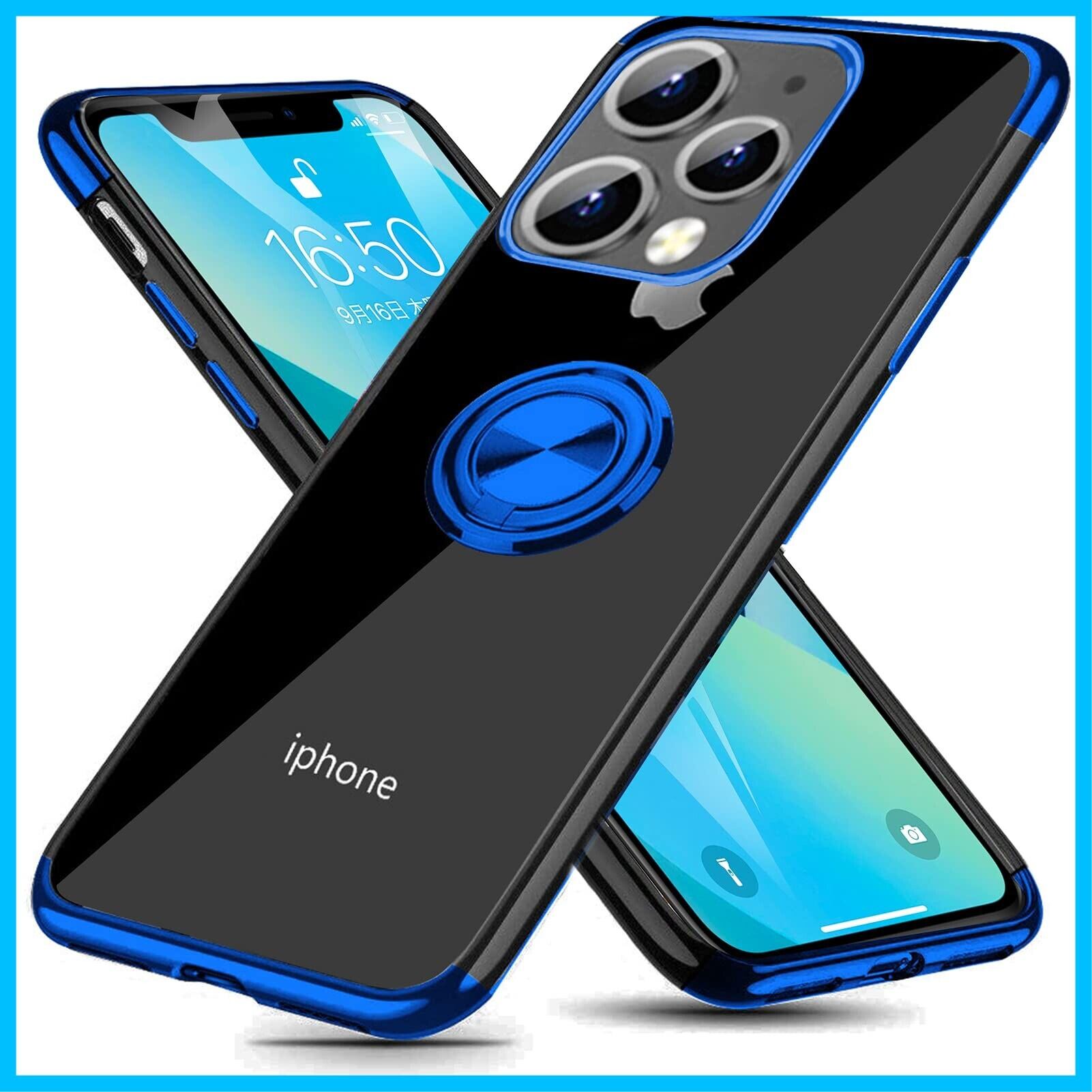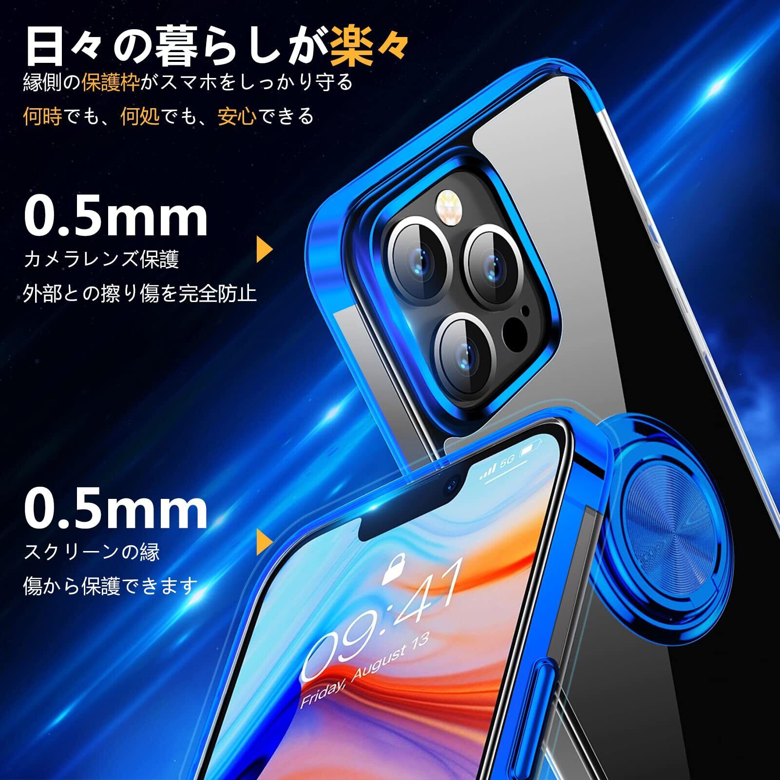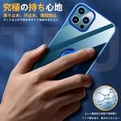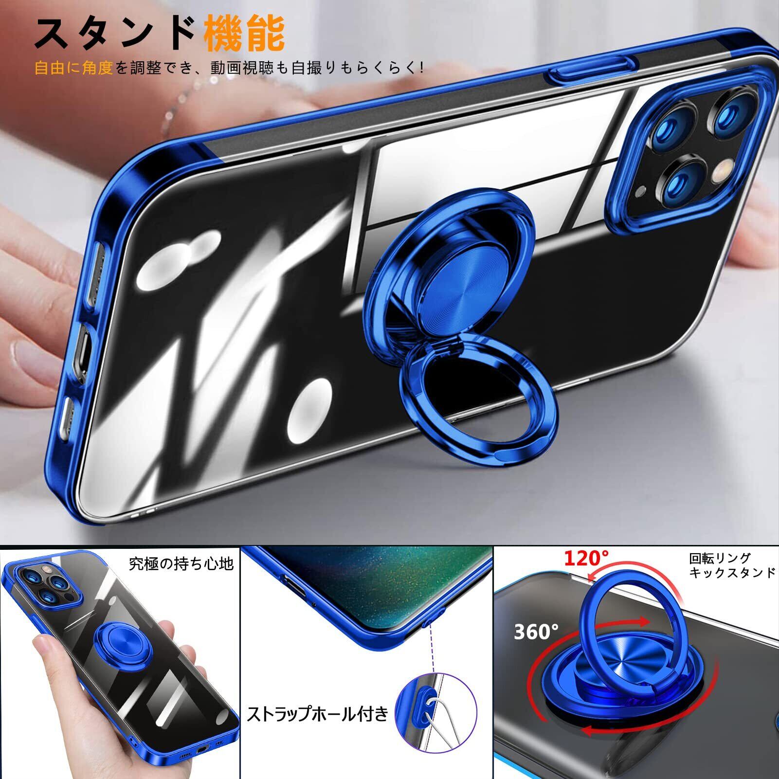 iPhone 13 Pro Max 用 ケース リング付き クリア 透明 TPU 耐衝撃 車載ホルダー対応 スタンド機能 防塵 薄型 軽量 落下防止 一体型 変形防止 全面保護カバー アイフォン 13 Pro Max 用 ケース 青 MJJ-1039-18-5