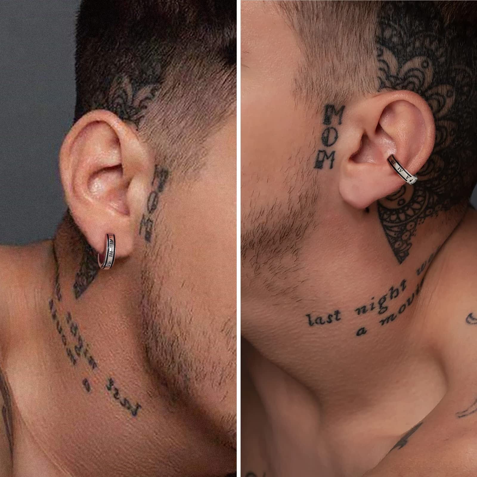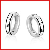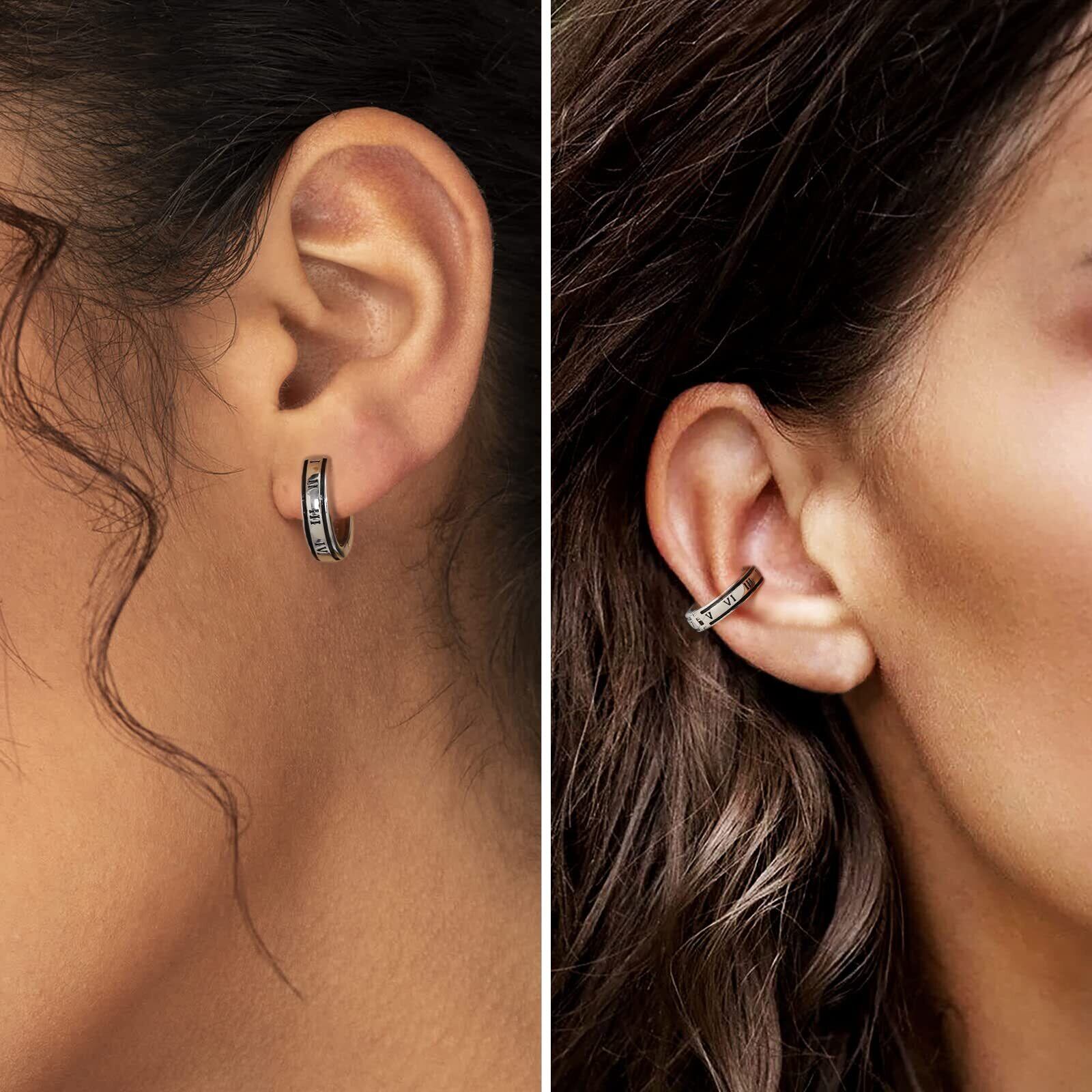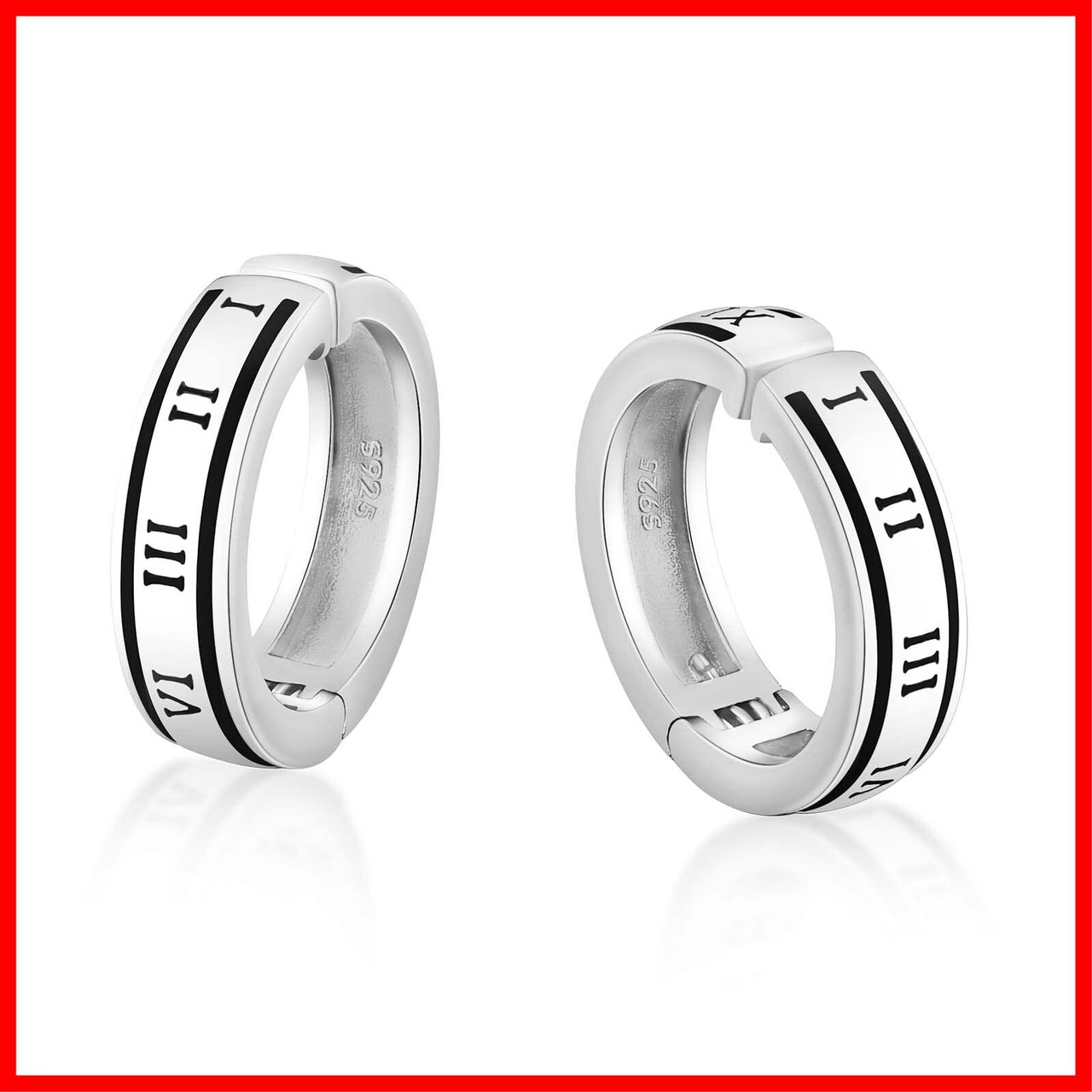KRKC&CO イヤリング メンズ フェイクピアス シルバー925 イヤーカフ 幅15mm ブラック フープイヤリング ノンホールピアス 両耳 黒 ローマ数字 シンプル 金属アレルギー対応 人気 (c.ローマ数字)