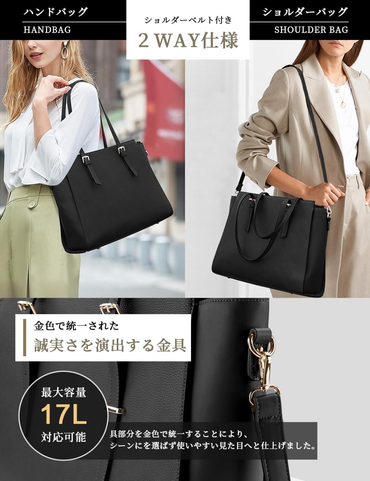 ビジネスバッグ レディース 大容量 トートバッグ 15.6インチ 8色 A4 ハンドバッグ ショルダー 2way 肩掛け 防水 就活 通勤 通学 肩掛け black