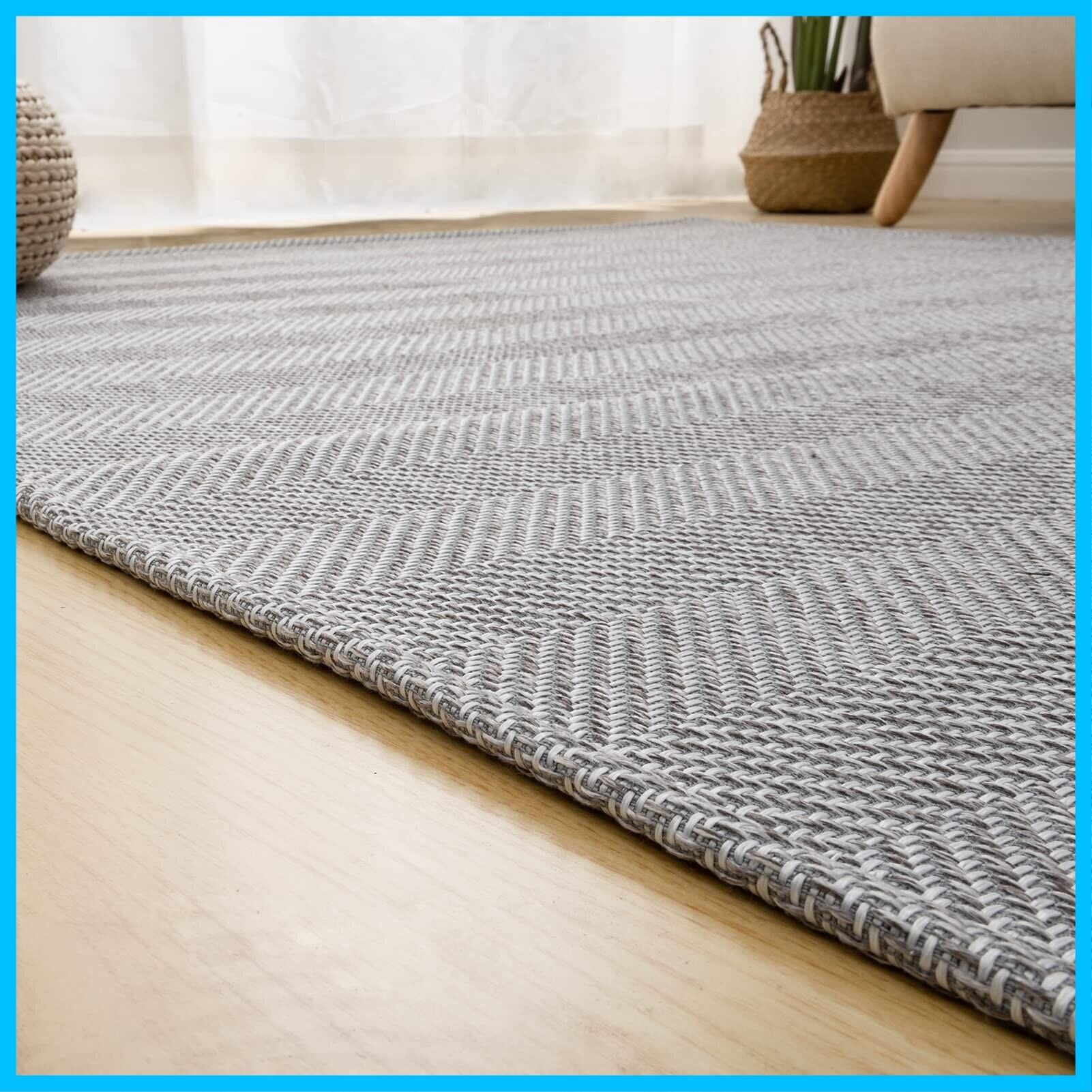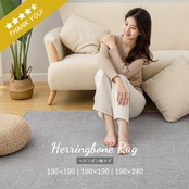 【ヘリンボン柄ラグ】低彩度の灰色を基調とした高級感あふれるカーペットです。落ち着いた色合いと精緻な織りが特徴で、上品で洗練された雰囲気を演出します。