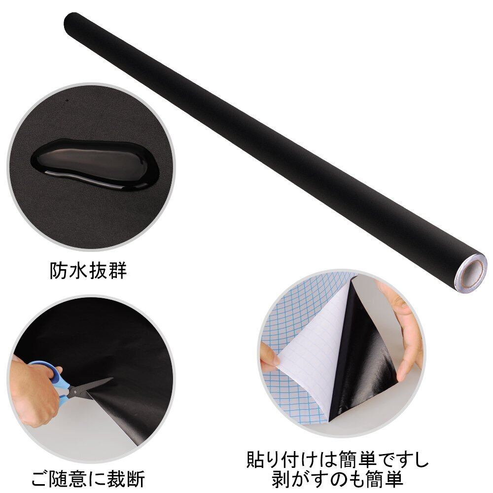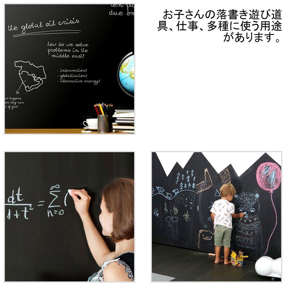 Fohil 黒板シート 壁に貼るウォールステッカー 90*200cm チョーク付き(ブラック)