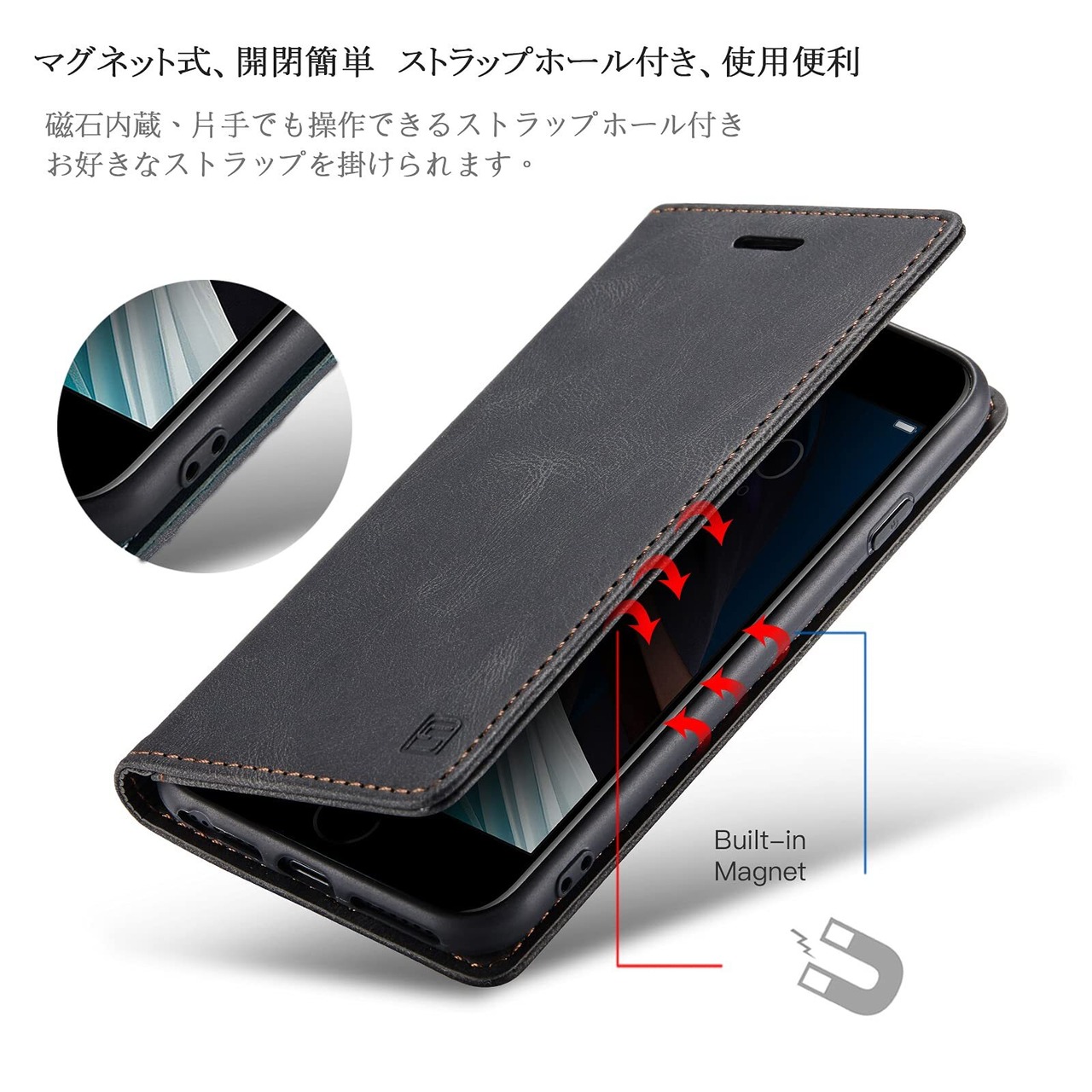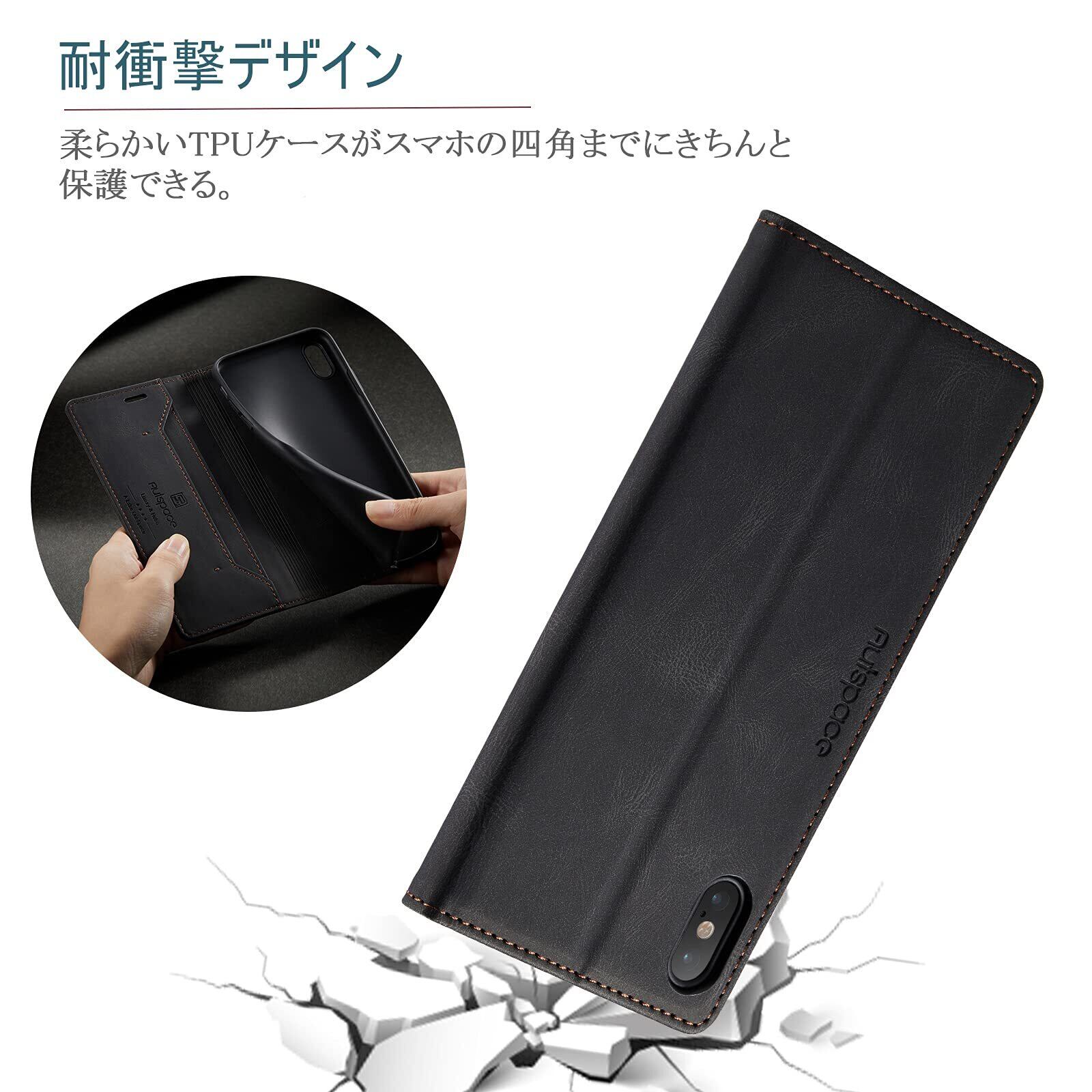 【肌感のような素材採用】普通のレザーより、耐熱性と柔軟性を一層アップされ、素材の表面に手触りは非常に良いフィット感を与えられ、夏でも手汗で変な匂いが出てきてません、落下時の衝撃を効率的よく吸収できるようにケースの各コナーの裏側が二層裾上げの生産プロセスで設計されています。丈夫でほど良い厚みで、落としてもスマホをきちんとお守れます、デザインはシンプルであるこそ、携帯の高級感を引き立たせる。