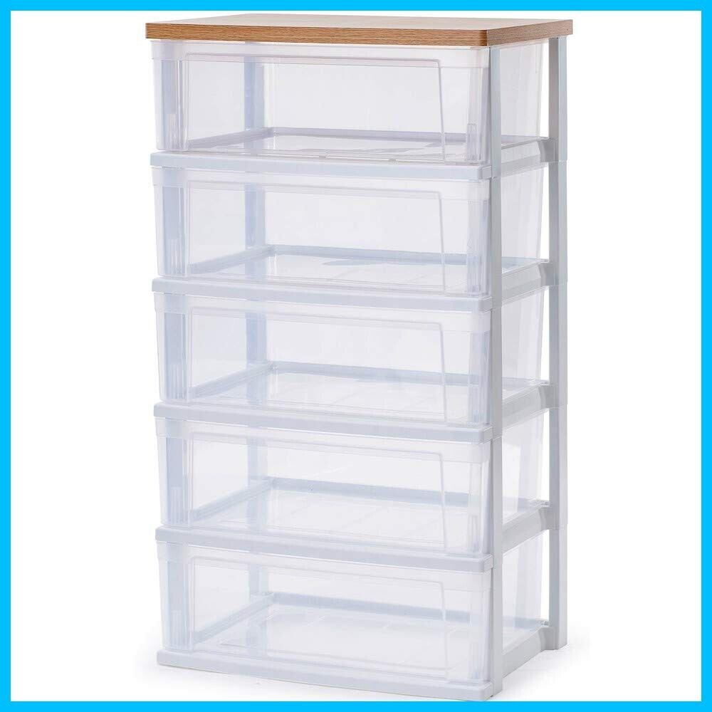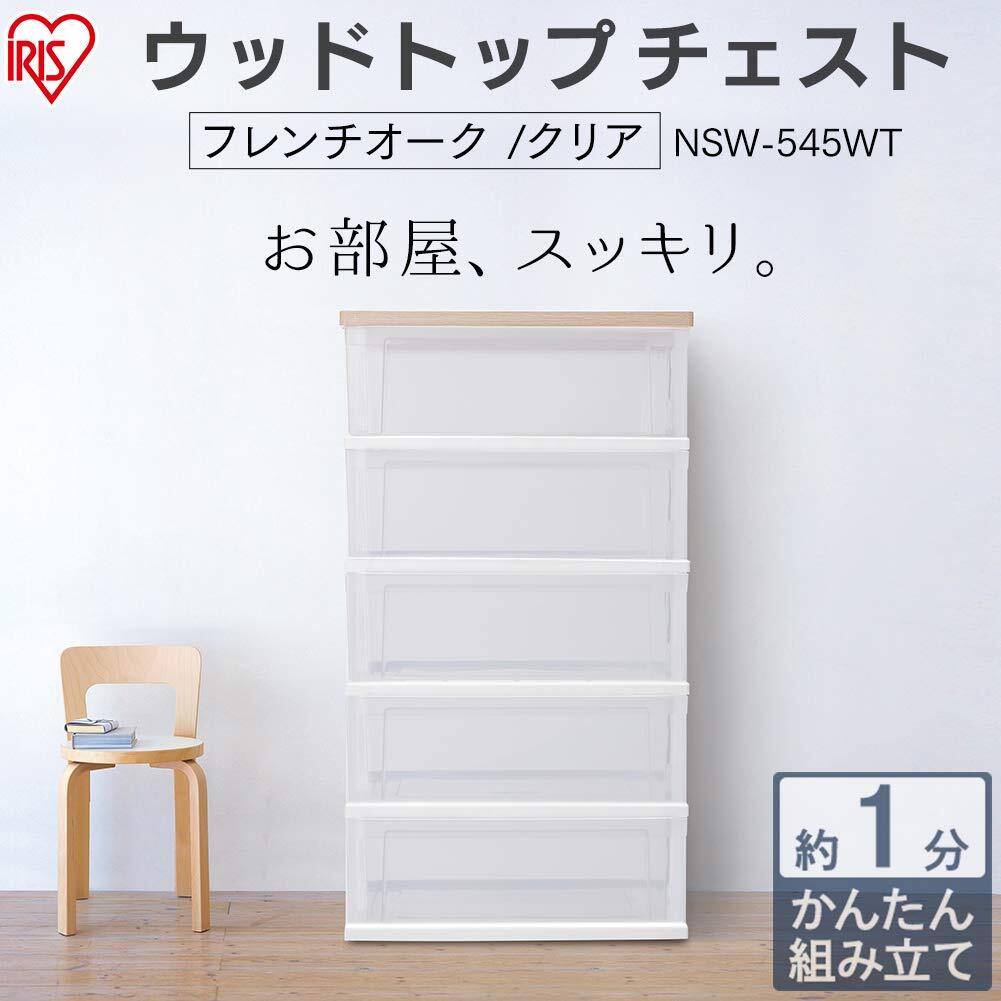 アイリスオーヤマ チェスト ワイド 5段 日本製 簡単組み立て 幅54.5×奥行き39.1 フレンチオーク木天板