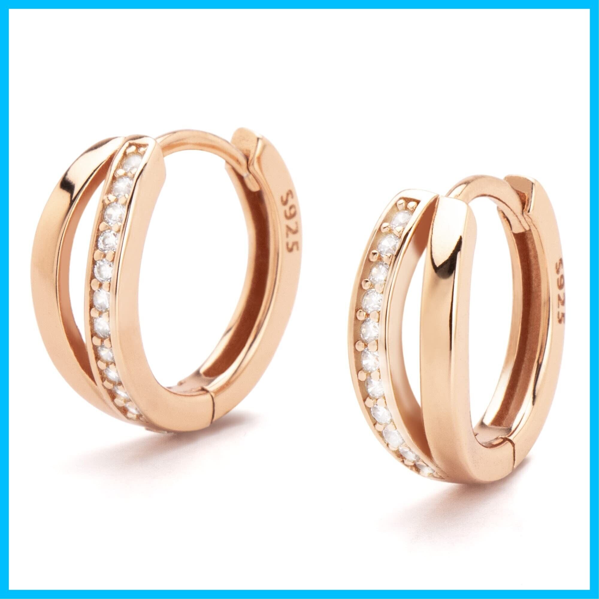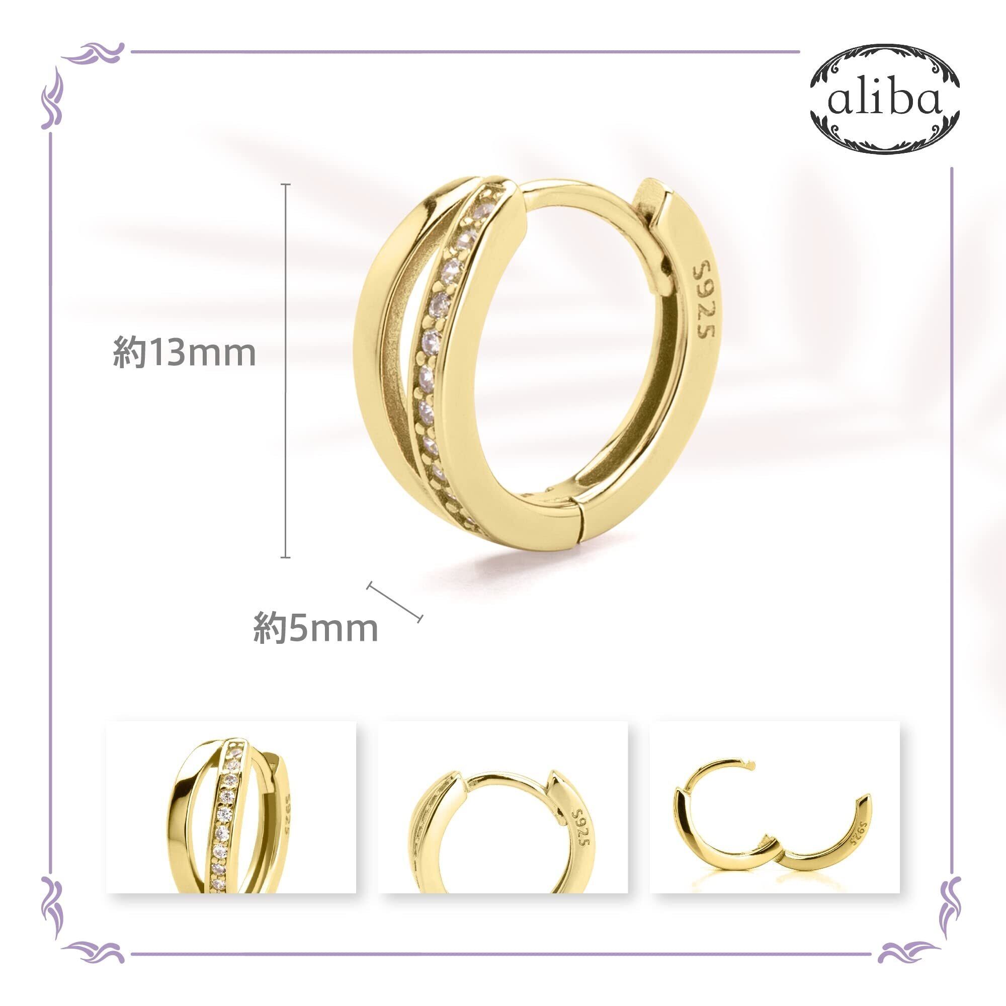 【きれいめ華やかデザイン】二重に広がるリングピアスの片方にジルコニアを敷き詰め、温かみのあるリング本体と、輝くジルコニアをミックス。サイズにもこだわって設計し、小ぶりなまま存在感があるサイズ設計。