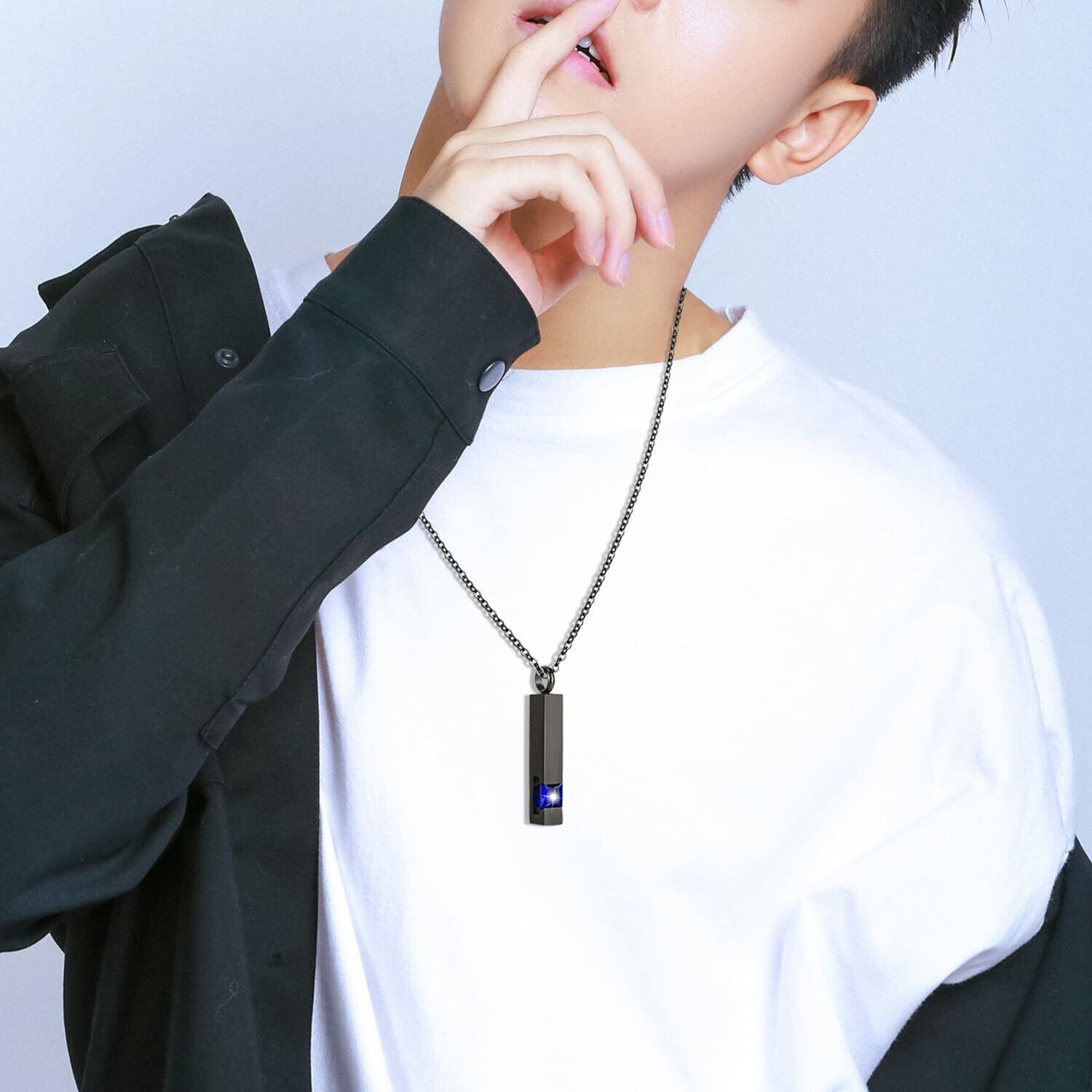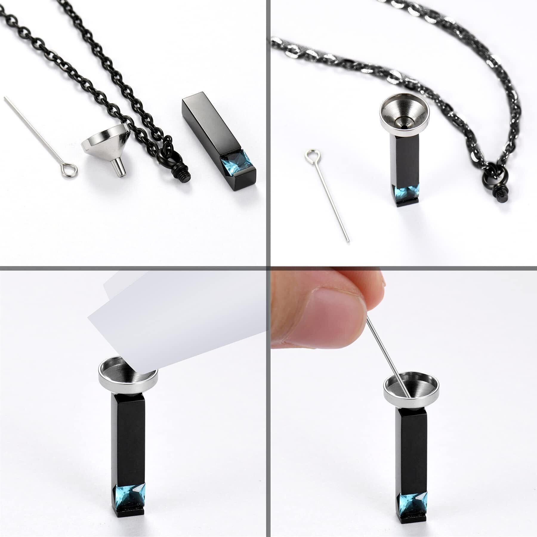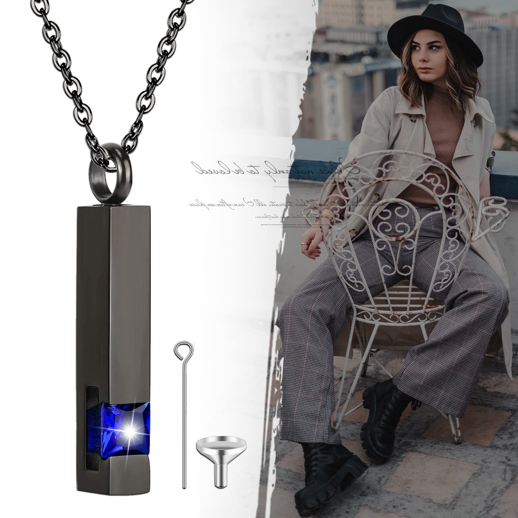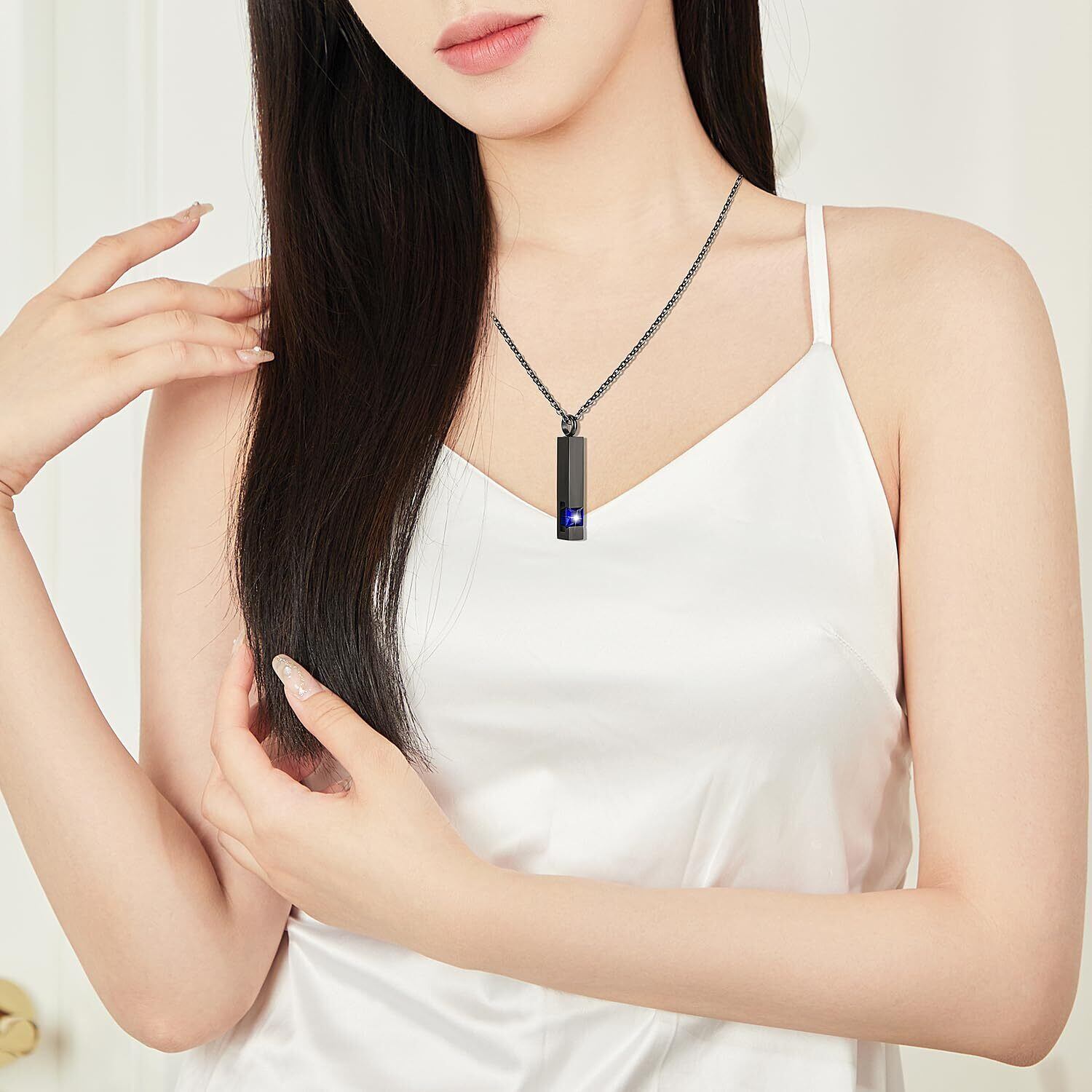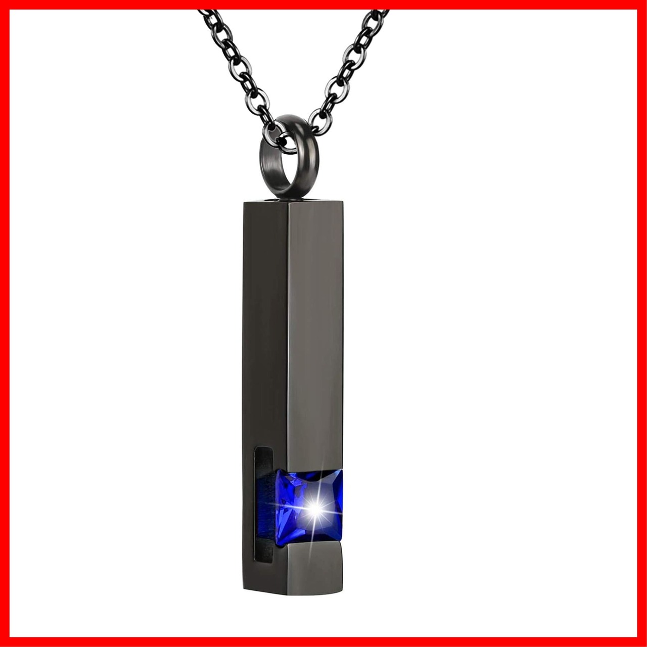 Flongo 誕生石ネックレス 9月 サファイア 香水瓶ネックレス 遺骨スティック ネックレス直方体 刻印無料 漏斗付き スティック メモリアル アクセサリー ペアネックレス カップル お揃い ステンレス ジルコニア 取り外し可能 男性 女性 ユニセックス 記念日 誕生日 プレゼント シンプルスタイル アネルギー対応(ブラック)