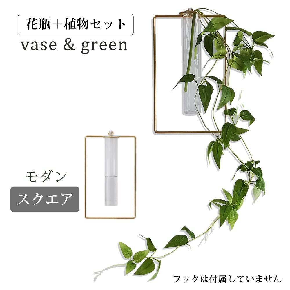 壁飾り インテリア お洒落 フェイクグリーン 壁掛け花瓶 セット インテリアグリーン おしゃれ 北欧 ガラス 一輪挿し 壁掛け雑貨 wall decor (スクエア(植物つき))