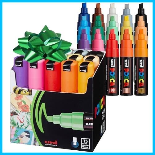 三菱鉛筆 水性ペン ポスカ 太字 角芯 15色 PC8K15C