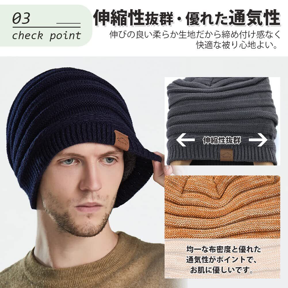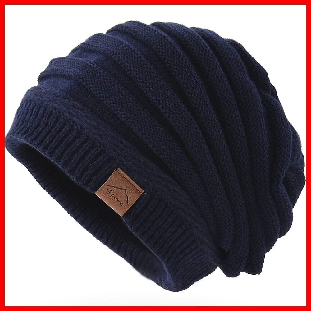 ニット帽 メンズ 冬 防寒 ふわふわ裏起毛・保温強化・360度美シルエット・静電気防止・大きいサイズ・伸縮性 保温 柔らかい シンプル おしゃれ 防風 無地 通勤・通学・自転車・スキー・スポーツ・アウトドア 男女兼用 (ネイビー)