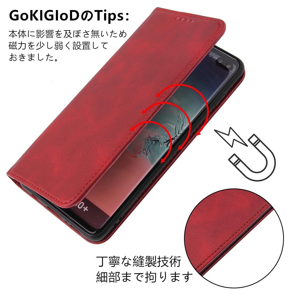 GOKIGIOD 適用 Galaxy A23 5G ケース 手帳型 PUレザー ストラップ 同梱 カード収納 スタンド機能 耐衝撃 ギャラクシー A23 SC-56C SCG18 スマホケース 手帳 GalaxyA235G case カバー 財布型 内蔵マグネット 弱磁 ストラップホール 携帯カバー レトロ レッド