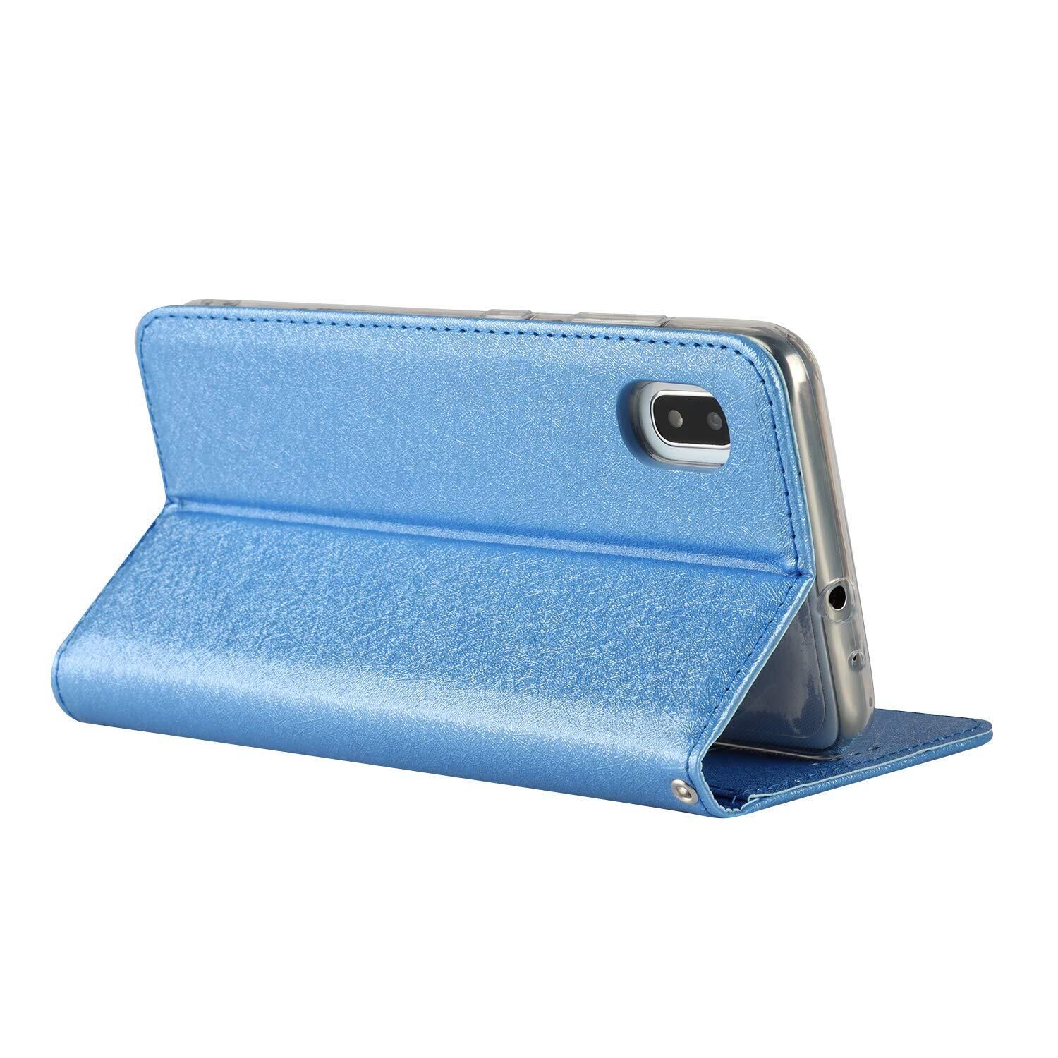 Galaxy A21 ケース SC-42A docomo (日本版) A21ケース カバー SC42A ケース ドコモ A21用 カバー サムスン ギャラクシー A21 スマホケース 携帯カバー 手帳型 カバー 財布 case 適用 ベルトなし スマホケース スプラット同梱 スクラブ処理 砂地の質感 マグネット ブルー