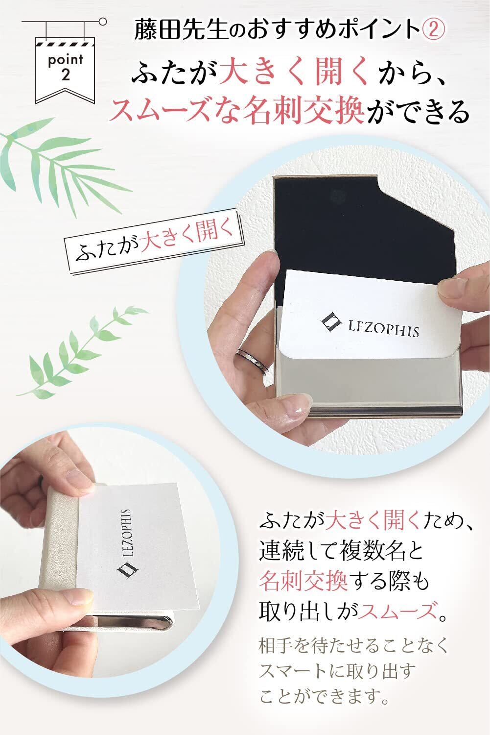 おすすめポイント② ふたが大きく開くからスムーズな名刺交換ができる。連続して複数の人と名刺交換する際も取り出しがスムーズ。