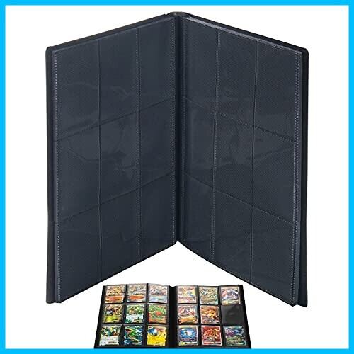 ポケットトレーディング カードアルバム、9ポケット仕様 360枚収納、サイドローディングPPポケット、ポケモンカードと互換性のあるカードバインダーポケットサイズ (ブラック)